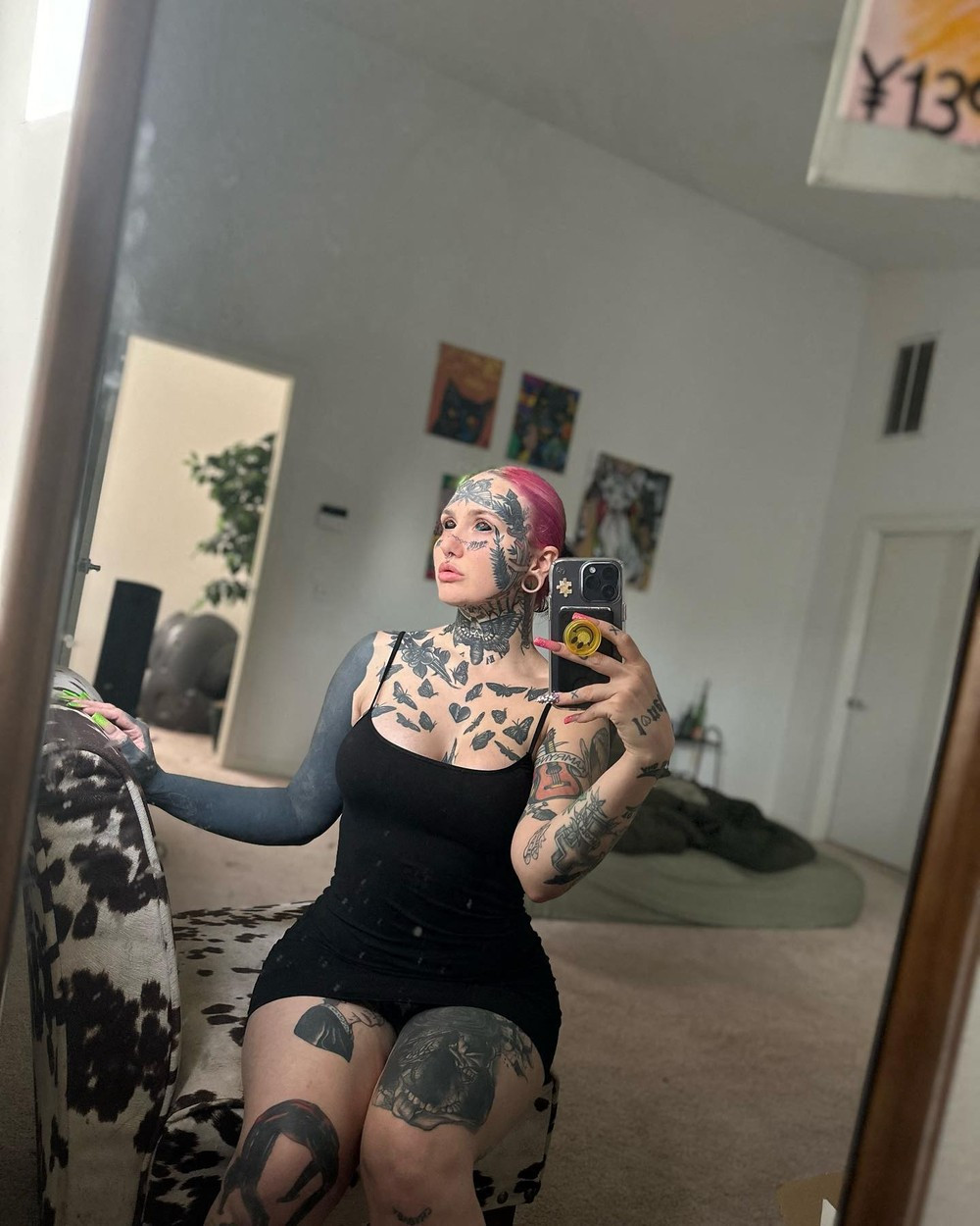 Kierstyn Milligan, în vârstă de 24 de ani a mai ajuns pe prima pagină a ziarelor în trecut pentru aspectul ei unic, după ce a cheltuit peste 38.000 de dolari pe tatuaje și modificări corporale extreme, scrie The Sun.