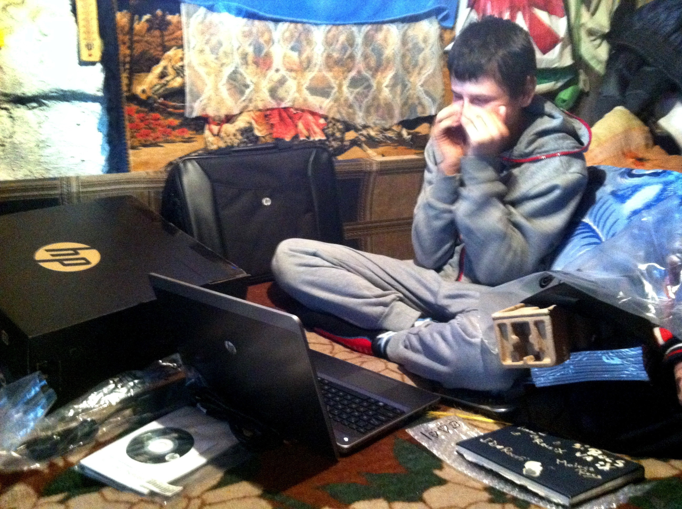 Corespondentul Stirilor ProTV, Camelia Dontu, ne-a relatat ca Aidin, aproape sufocat de fericire, le-a multumit celor care ii ajuta in aceste momente, a declarat ca urmatorul laptop primit va fi oferit cadou unui alt copil, nevoias si el.