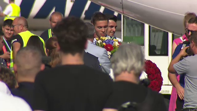 Avionul cu care a venit campionul ar fi trebuit să aterizeze la ora 15.50, dar a avut o întârziere de aproximativ o oră şi 20 de minute.