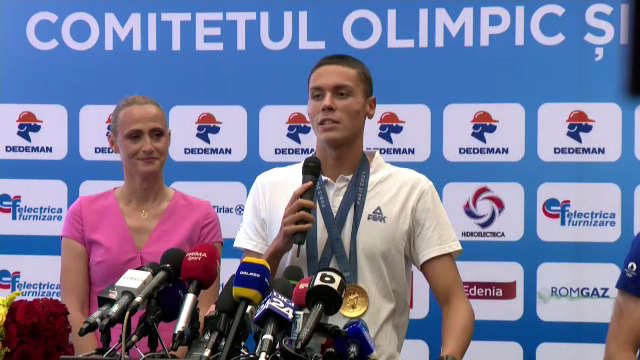 David Popovici a revenit în ţară după ce a câştigat două medalii la JO. „Este nevoie de bani investiți în sport”