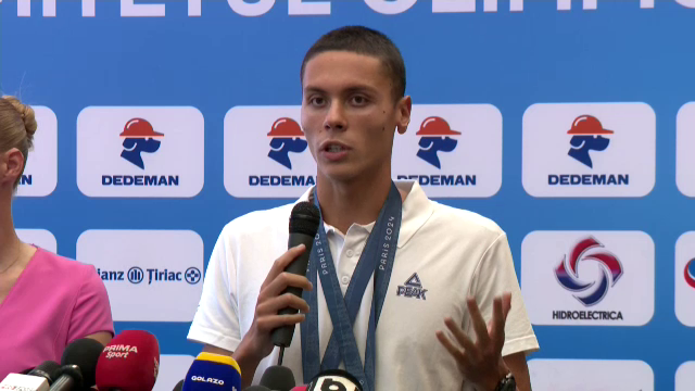 “Aş dori să felicit şi public pe cel care a devenit campion olimpic la înot, care a reuşit după 20 de ani să facă înotul să strălucească din nou. Îl felicit şi îi mulţumesc lui David Popovici. Şi pe Adrian Rădulescu îl felicit. Îl felicităm şi pe Dragoş Luscan şi pe toţi cei care fac parte din echipa lui David, şi pe membrii familiei şi pe toţi membrii familiilor celor care au adus plus valoare acestui sport. Iată, înotul străluceşte. După 20 de ani înotul străluceşte din nou. Cu siguranţă că nu vor mai trece alţi 20 de ani până să mai strălucească şi avem speranţe că în frunte cu David Popovici o generaţie de sportivi care vor aduce în continuare valoare înotului românesc şi României va continua să facă valuri la nivel mondial. Bine aţi venit acasă!”, a spus Potec.