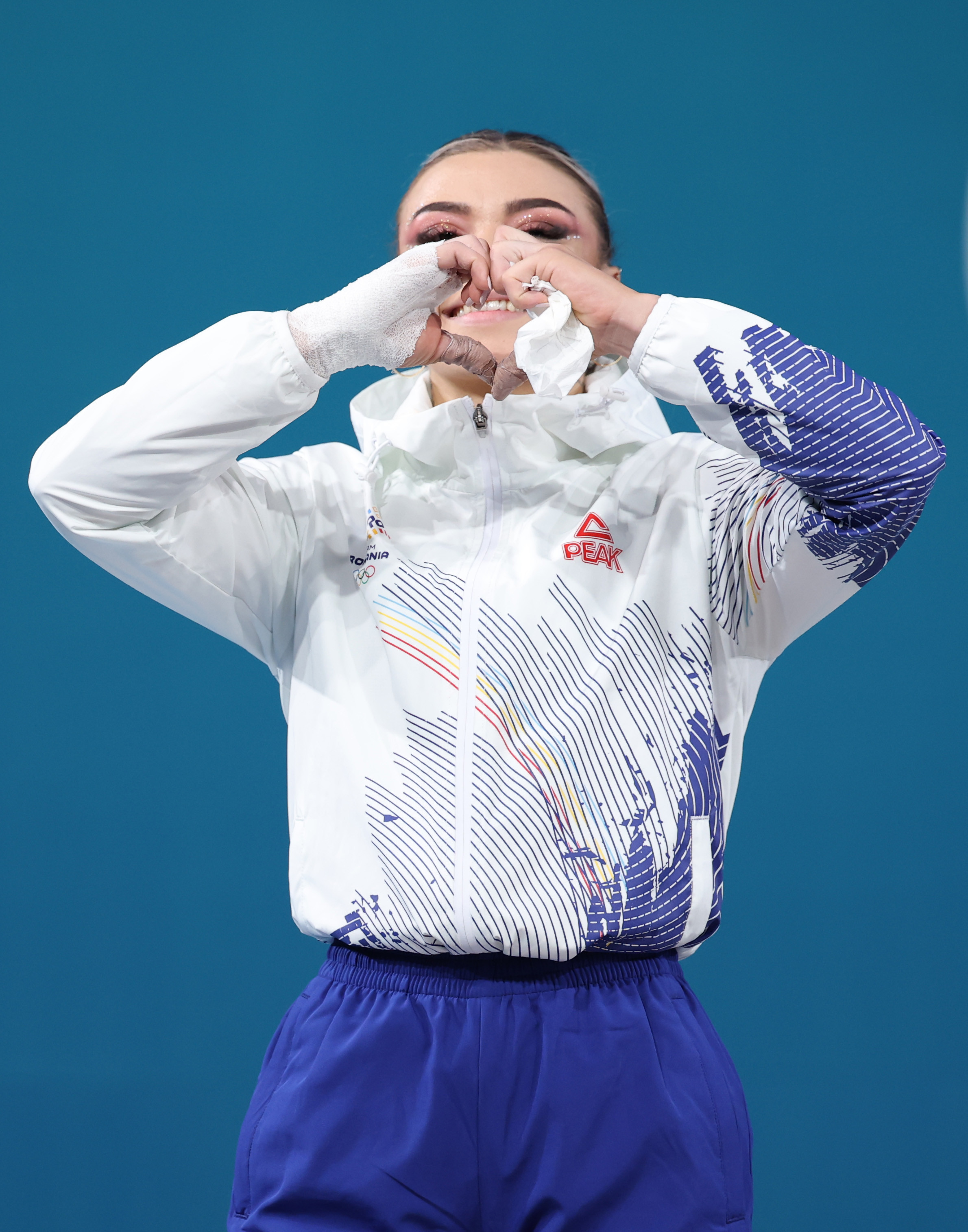 "Această medalie o dedic antrenorul lui meu, Valeriu Calancea, care m-a suportat în tot acest timp, părinţilor mei, lui Dumnezeu, care a fost alături de mine şi m-a scos sănătoasă din această competiţie şi întregului staff care a fost alături de mine. Am sărutat greutăţile la final pentru că au fost prietenoase cu mine şi ele m-au ajutat. Acest moment este fix aşa cum mi l-am imaginat şi medalia are fix aceeaşi culoare", a adăugat ea.