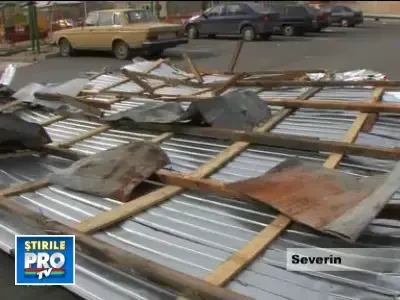 In orasul Drobeta Turnu Severin, vantul a smuls in aceasta dimineata acoperisul de pe mai multe cladiri, iar cateva panouri publicitare au fost puse la pamant. Si in judetele Timis si Caras-Severin sunt anuntate pentru urmatoarele ore furtuni.