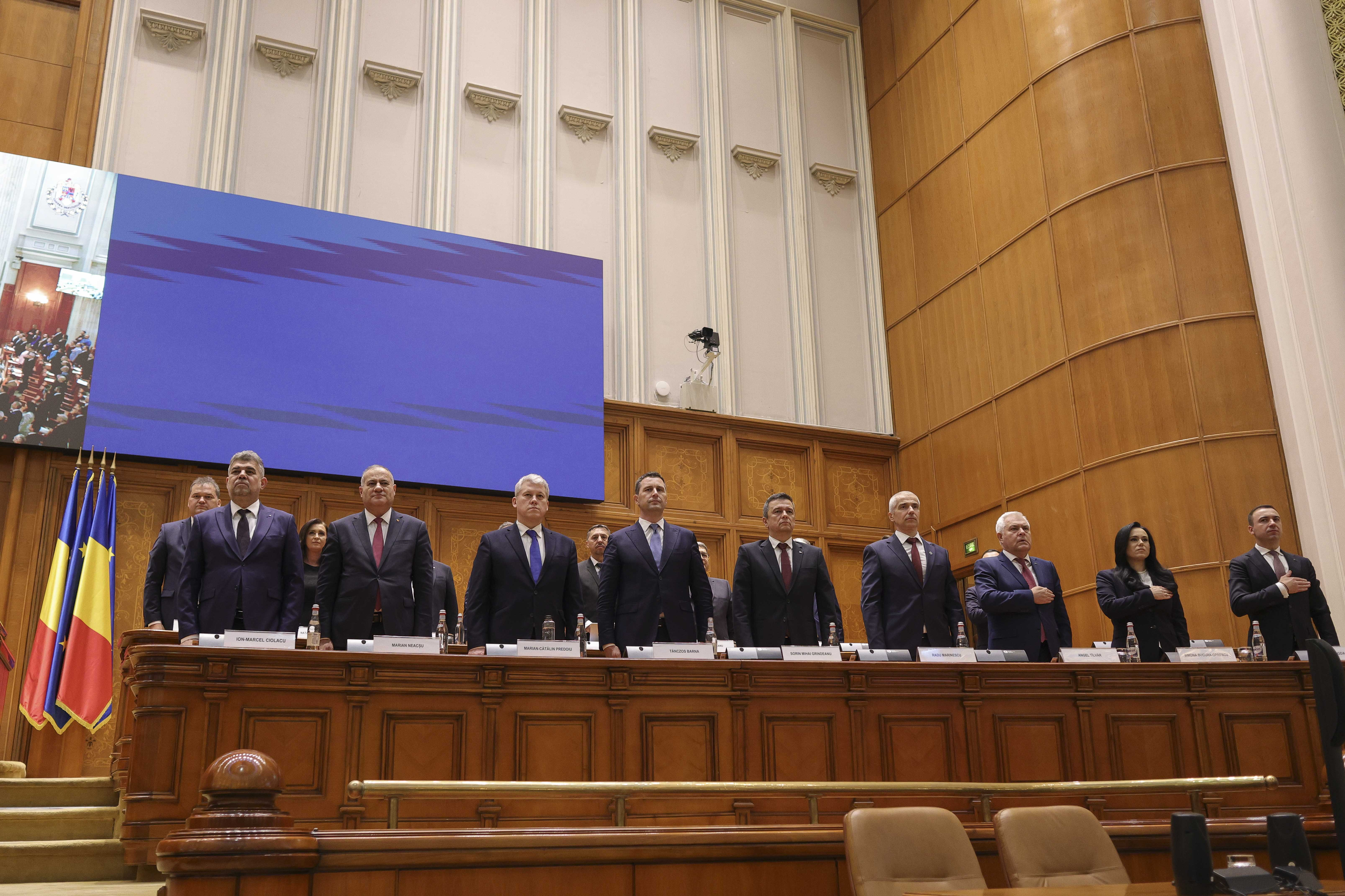 Premierul desemnat Marcel Ciolacu va prezenta programul şi lista Guvernului, apoi vor fi dezbateri şi votul asupra cererii de acordare a încrederii Parlamentului.