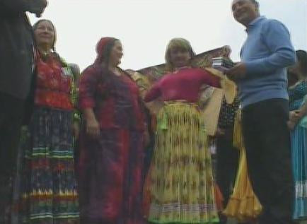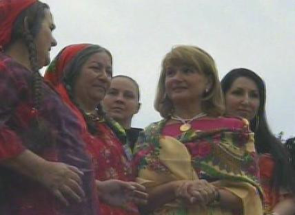 Anul acesta, s-au trezit insa vizitati de presedinte. Traian Basescu a vrut sa fie si el la petrecere si s-a intretinut mai tot timpul cu auto-intitulatul rege Cioaba, in timp ce prima doamna a fost imbracata de gazde cu o fusta traditionala si a primit si un banut din aur. "Sa-ti poarte noroc!", i-au spus tigancile, care au si pupat-o cu foc.