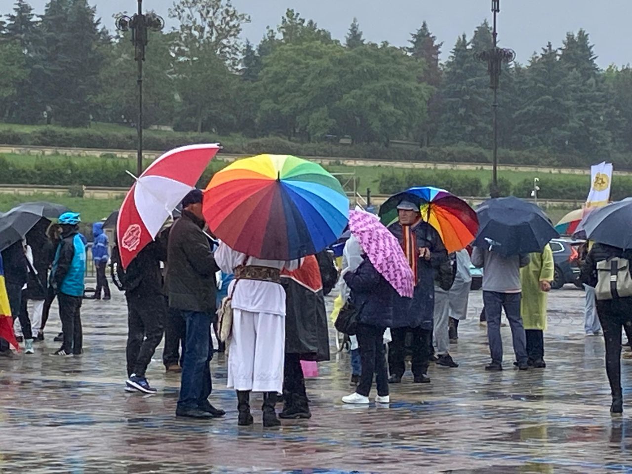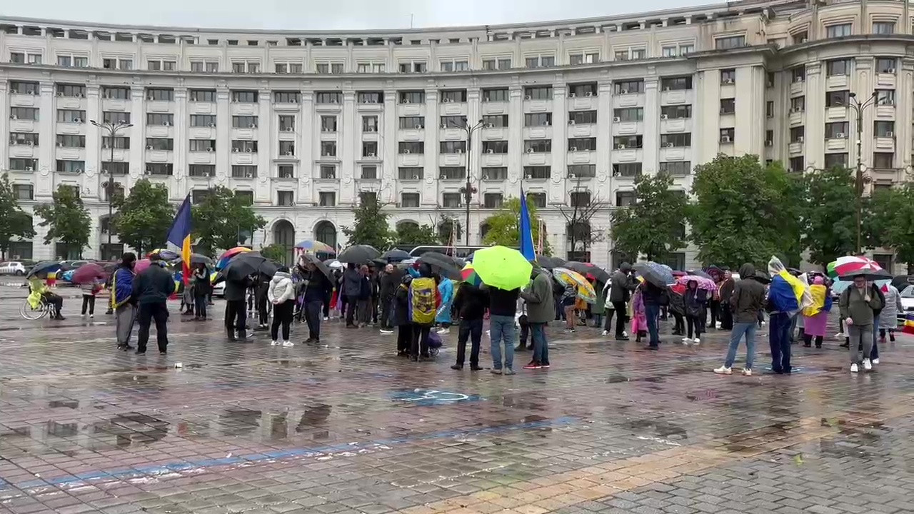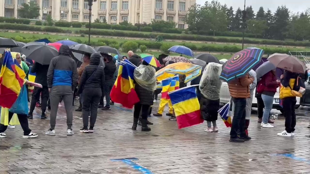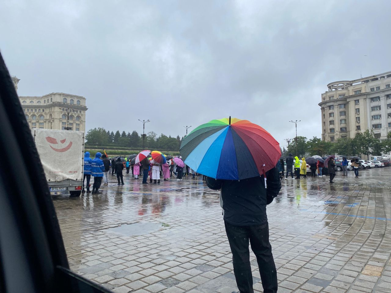 Câți oameni au fost la protestele cerute de George Simion. Un participant a avut o umbrelă în culori ca ale comunității LGBT