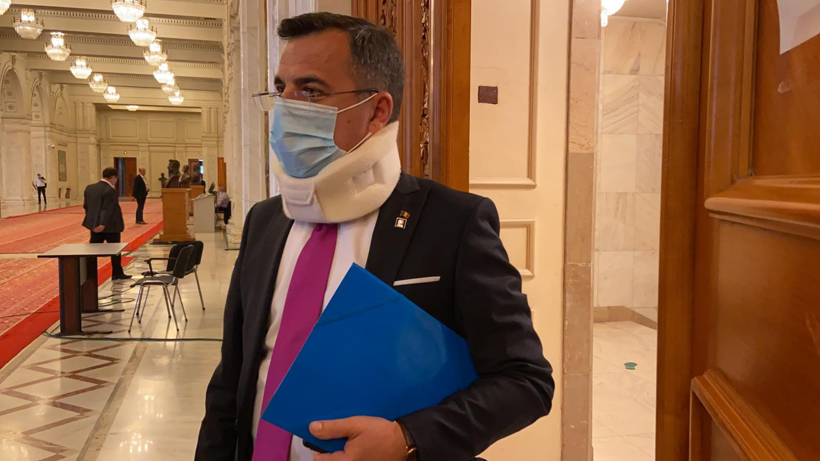 Ministrul Dezvoltării a venit în Parlament purtând, din nou, gulerul cervical, așa cum s-a întâmplat și în data de 9 iunie.
