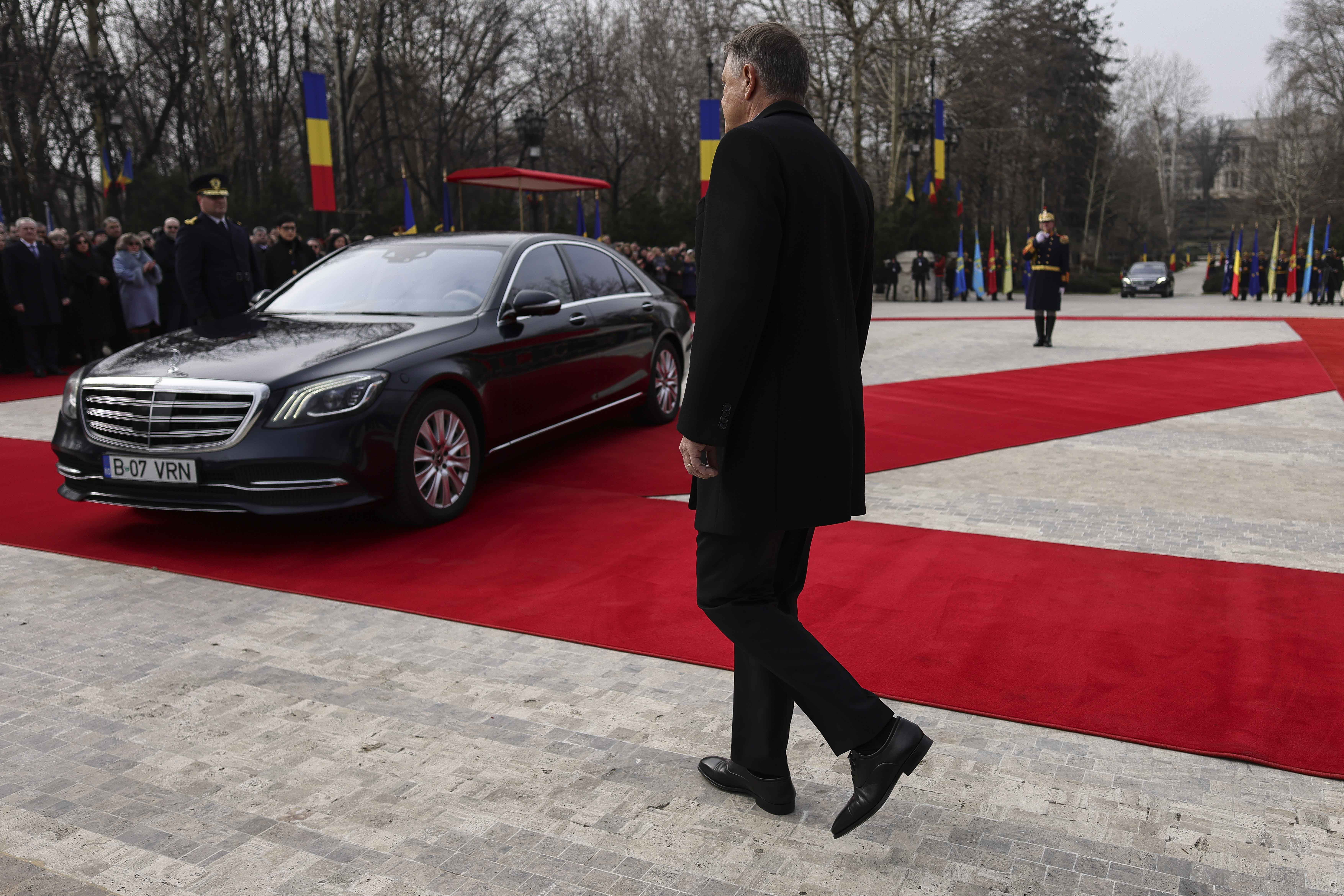 În timpul în care Klaus Iohannis şi Ilie Bolojan au avut discuția, care a durat în jur de 15 minute, pe Platoul Marinescu a fost pregătit autoturismul cu care preşedintele a părăsit Palatul Cotroceni.