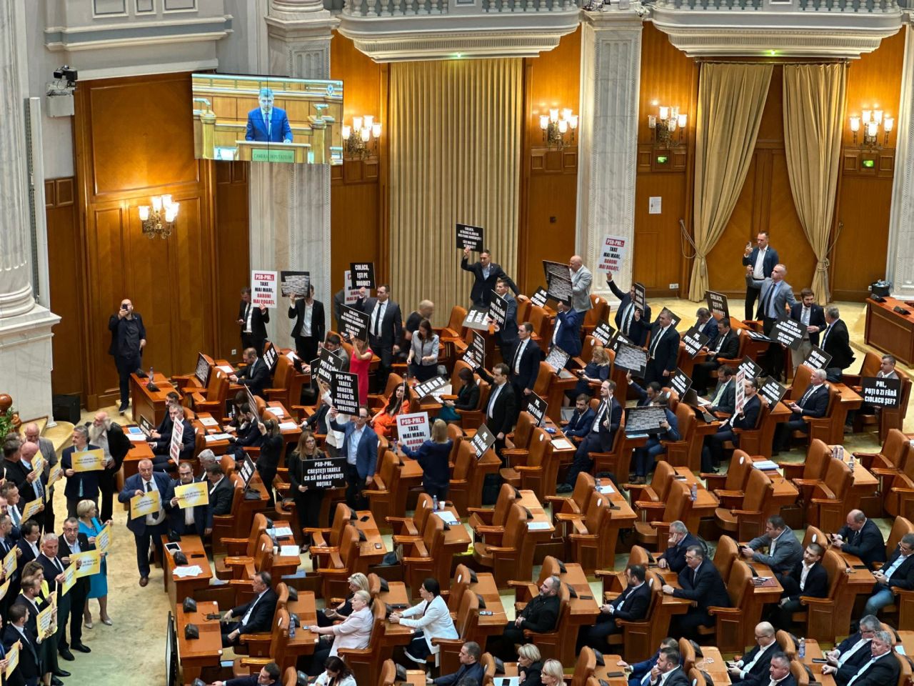 Opoziția parlamentară a protestat în timpul discursului premierului.