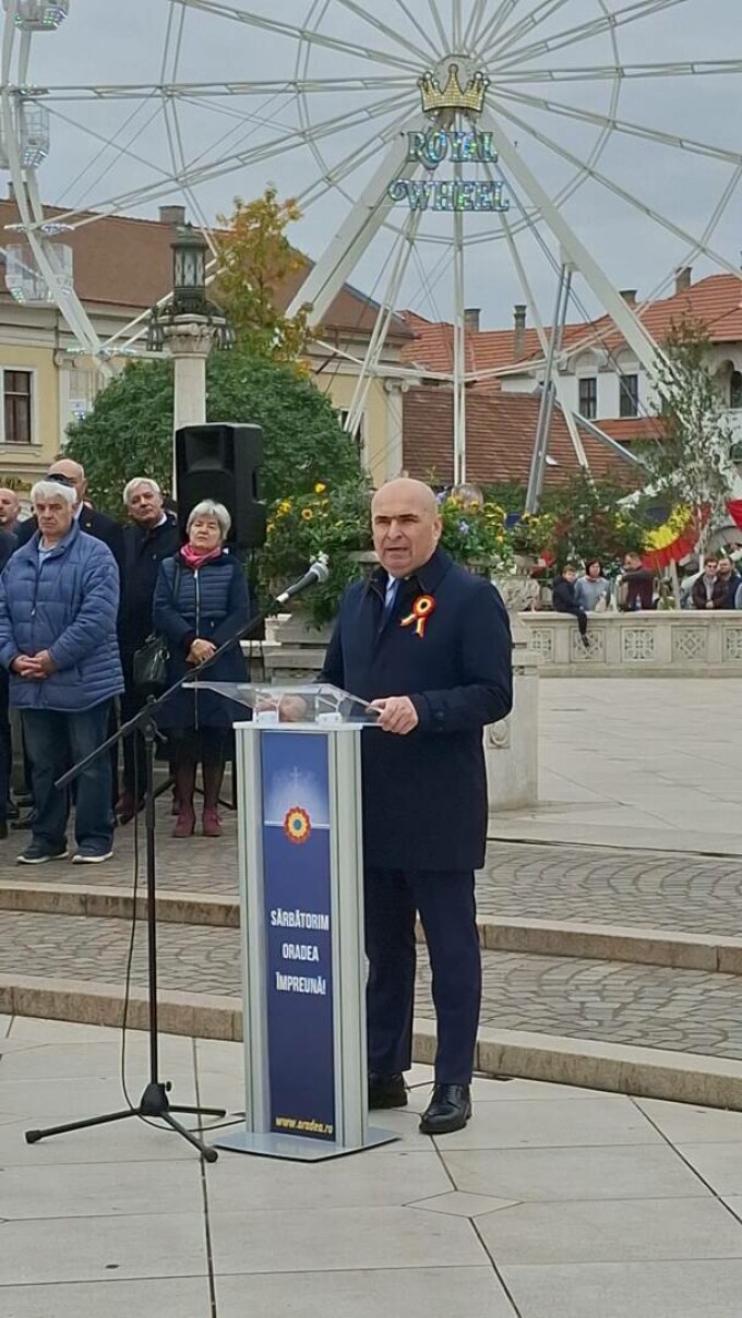 "În 12 octombrie 1918, aici era un teritoriu al nimănui, în care dacă luai astfel de decizii, cum au luat liderii comunităţii române din Transilvania la Oradea, îţi riscai viaţa. Gândiţi-vă că doar la câteva luni, Ioan Ciordaş şi Nicolae Bolcaş au fost asasinaţi. Oamenii care au condus comunitatea noastră au avut forţa să ia decizii şi această decizie a fost un element de bază a ceea ce s-a întâmplat apoi prin citirea acestei declaraţii de a sta pe picioarele noastre în Parlamentul de la Budapesta, prin negocierile de la Arad ale Consiliului Naţional Român, prin decizia sintetizată de Iuliu Maniu, despărţire totală şi prin ceea ce s-a întâmplat apoi la Alba Iulia", a spus Bolojan.
