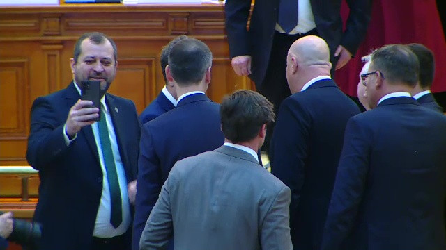 VIDEO. Moment neobișnuit în Parlamentul României. Parlamentarii au stat la rând ca să facă selfie-uri cu Nicușor Dan