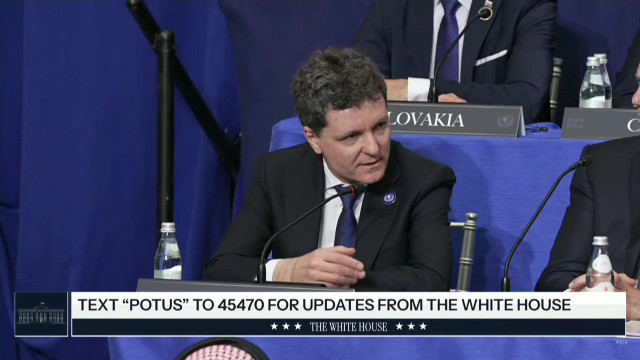 ”Înainte de toate, domnule președinte Trump, vă mulțumesc că ați stabilit această întâlnire importantă și pentru implicarea dumneavoastră pentru planul de pace în Gaza, un plan cuprinzător și stabil și, de asemenea, pentru eforturile și rezultatele dumneavoastră în alte părți ale lumii. Cred că toată lumea își dorește pace în Gaza, dar întrebarea e cum să o obținem, și de aceea întâlnirea în acest format e importantă. Ce poate să facă România – în primul rând, situația umanitară – putem crește numărul de zboruri de urgență pentru a extrage copii bolnavi și să-i tratăm în spitale românești, facem asta deja. Și putem face asta pentru 1000 de copii și 4000 de membri ai familiilor lor.