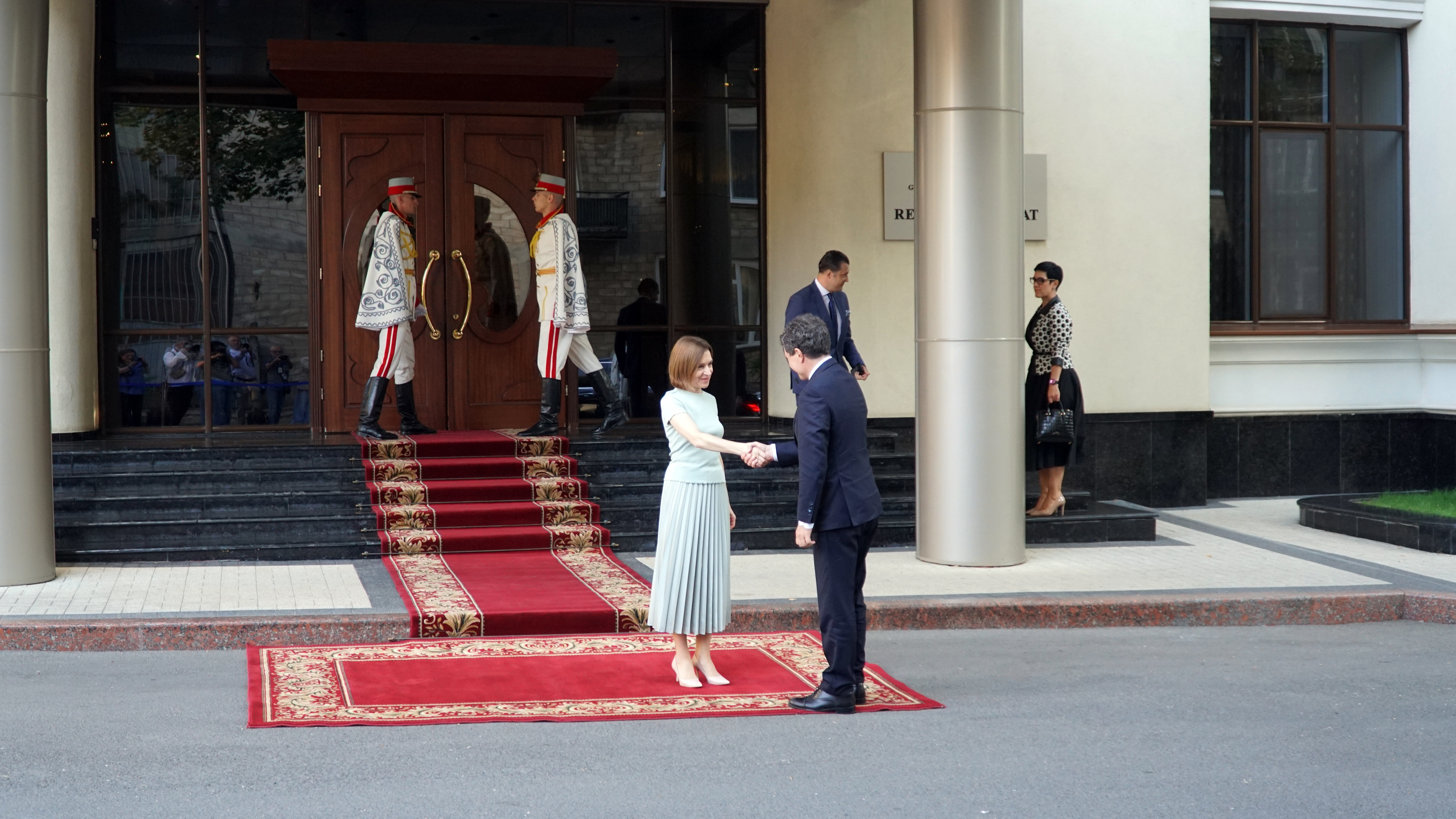 Preşedintele Nicuşor Dan a fost primit, duminică dimineaţă, la Reşedinţa de Stat din Chişinău, de omologul său moldovean, Maia Sandu.