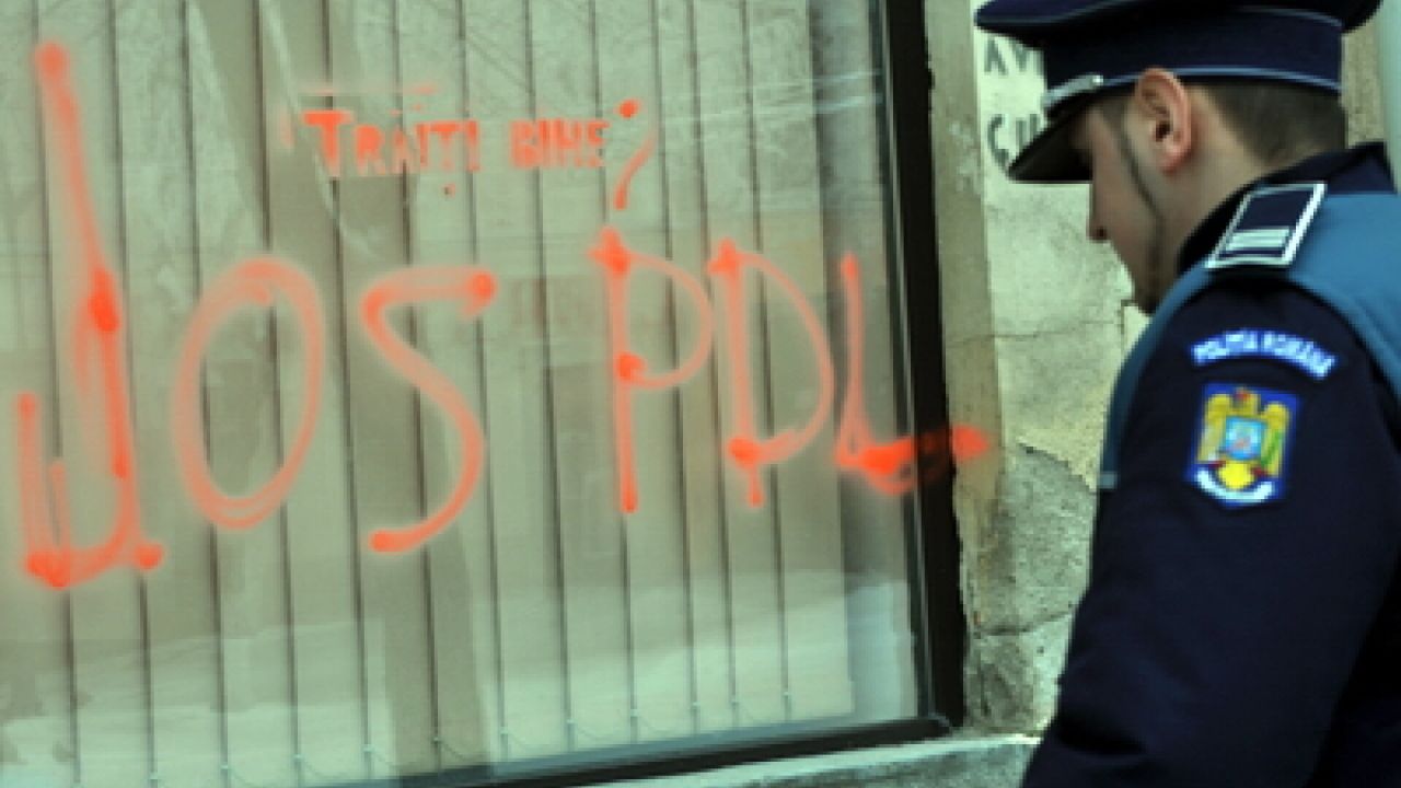Sediul PDL din Bistrita a fost vandalizat in noaptea de luni spre marti de persoane deocamdata necunoscute. Pe geamurile sediului au fost scrise cu vopsea neagra si portocalie diferite mesaje, precum "Hotii!", "Jos PDL!" si "Traiti bine?"