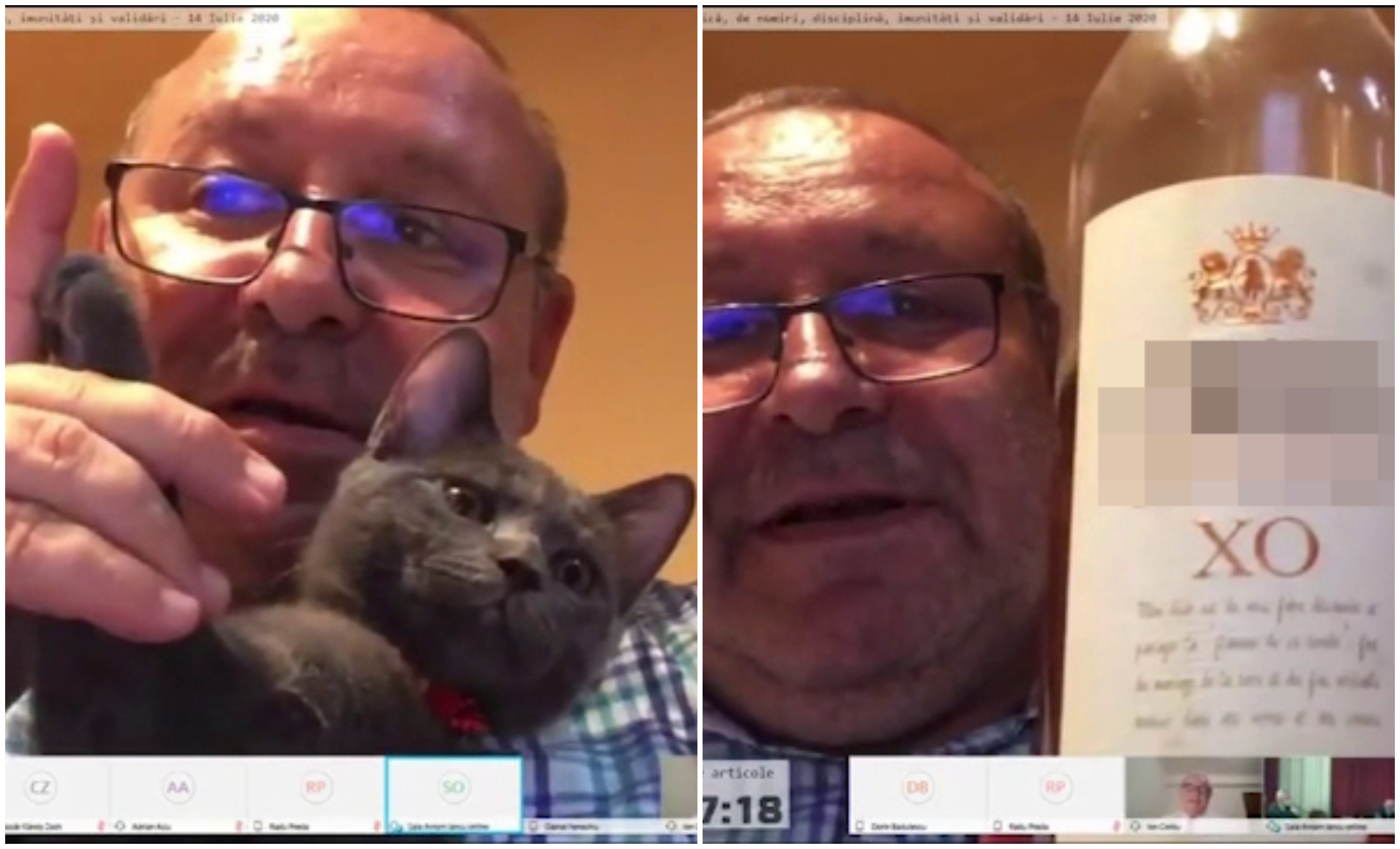 Senatorul PNL Fenechiu, filmat cu un coniac și o pisică la dezbaterile Legii carantinării