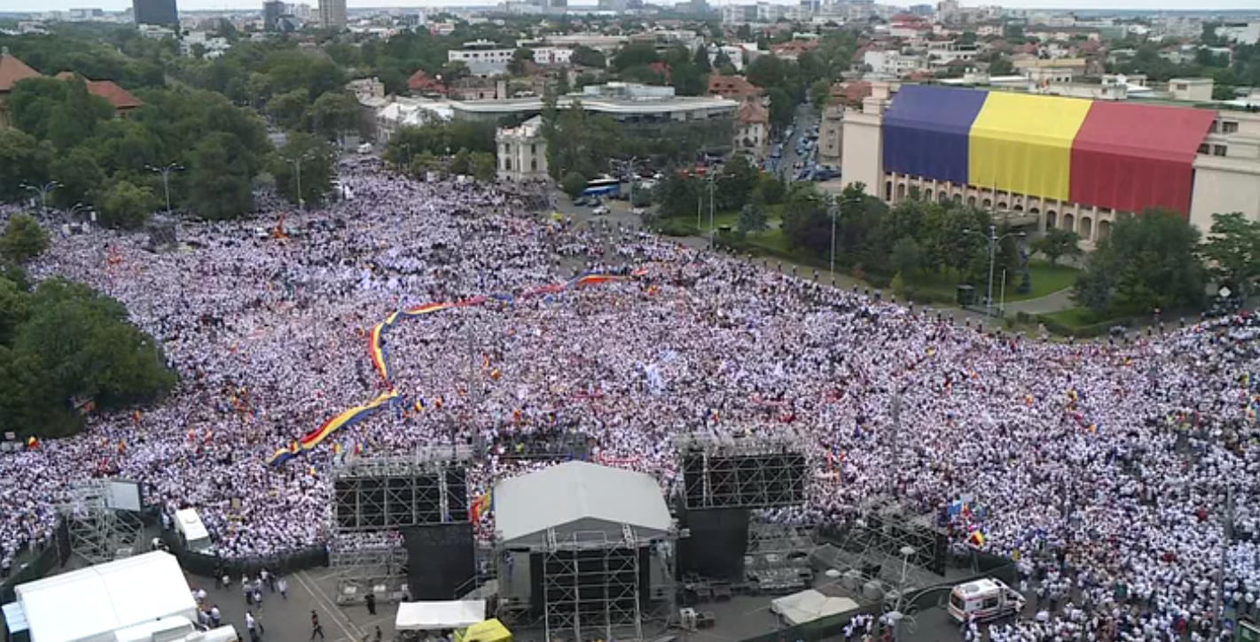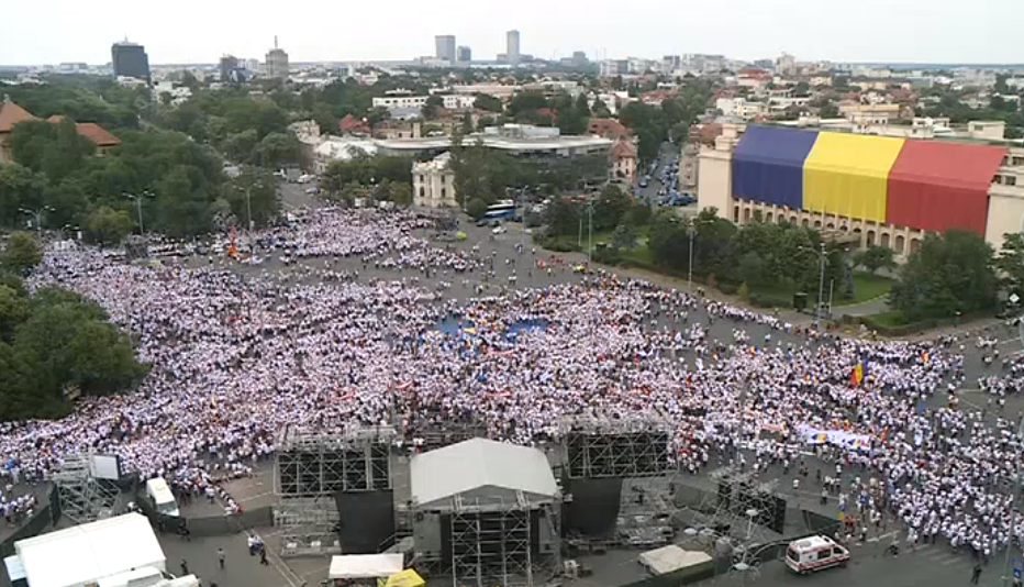 - Îi salut de asemenea, dar de astă dată cu milă, pe toți trimișii în piață ai statului paralel. Și vă rog să-i salutați. Suntem mulți, astăzi aici. Mai mulți decât s-au așteptat cei care râdeau, care ne insultau.