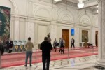 VIDEO. Un bărbat îmbrăcat în armură medievală, înarmat cu scut și sabie, a venit în Parlamentul României cu un deputat PSD