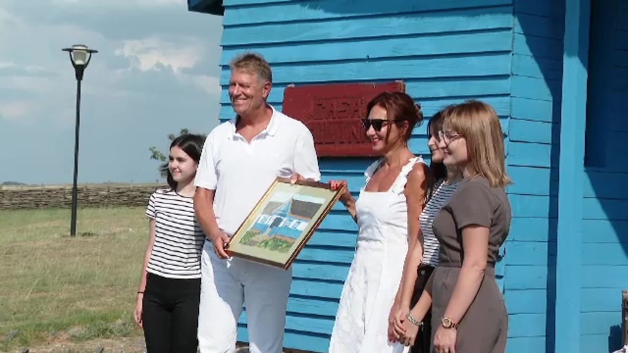 Cuplul prezidenţial a primit din partea directoarei Liceului de arte "George Georgescu", Claudia Grigore, şi a elevelor un tablou cu o casă tradiţională din Deltă.