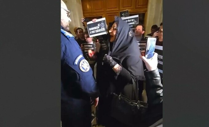 Președinta partidului SOS România a transmis toate aceste scene pe pagina ei de Facebook, ea fiind îmbrăcată ”de doliu”, complet în negru, pentru a semnala, astfel, ”moartea” democrației.