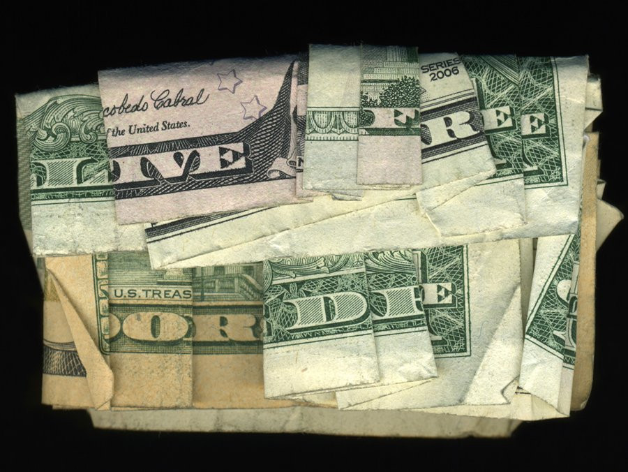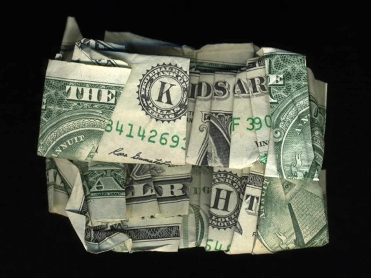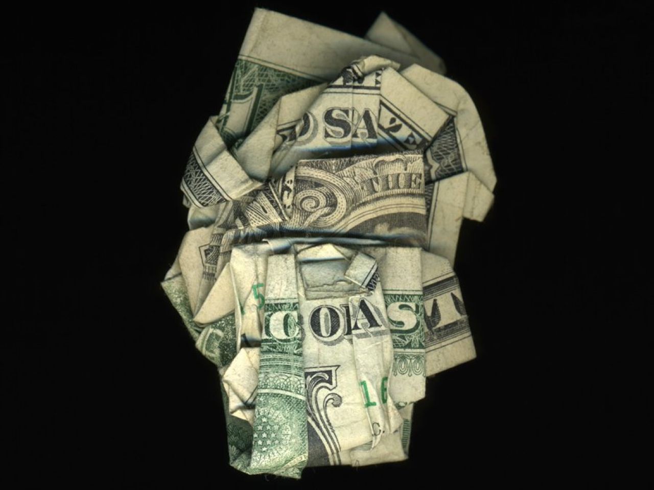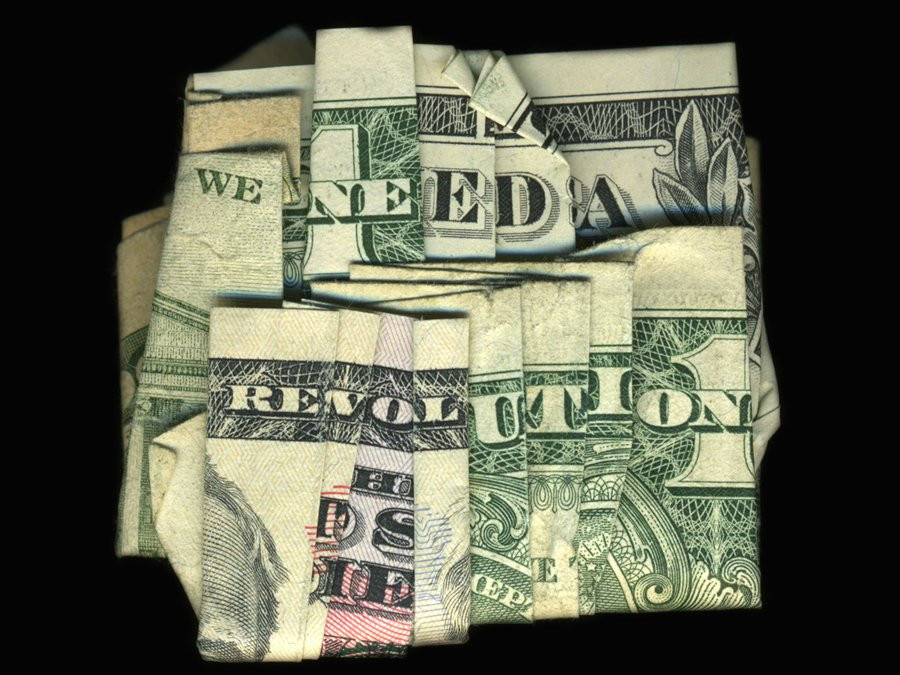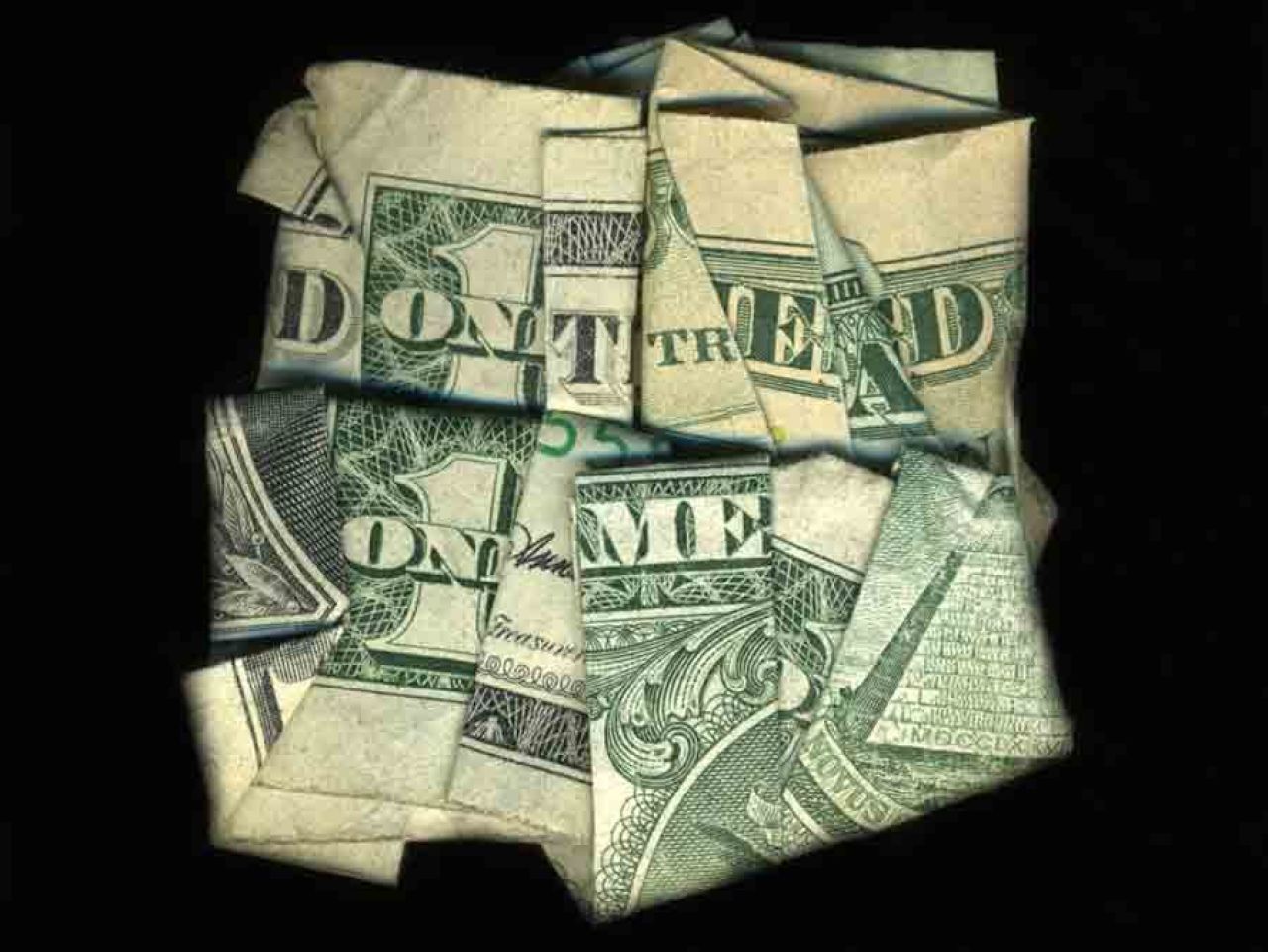 Bancnotele mototolite din buzunarele tale ar putea insemna ceva. Un artist american a reusit sa impatureasca o bancnota de 100 de ori si a realizat ca literele inscriptionate au o insemnatate ciudata sau chiar comica.