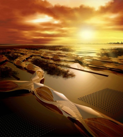 S+PBA, un grup de arhitecti thailandezi, a proiectat un viitor indistructibil: Wetropolis. Astfel constructia se bazeaza pe folosirea mangrovelor indigene, ce pot filtra apa in mod natural, asigurand oxigen pentru intreaga constructie.