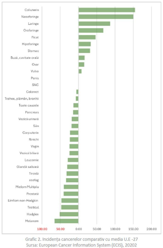 Pe lângă factorii de risc legați de stilul de viață, cifrele cu mult peste media UE legate de prevalența și mortalitatea cauzate de cancer se datorează și faptului că autoritățile alocă fonduri insuficiente pentru screening și tratamente.