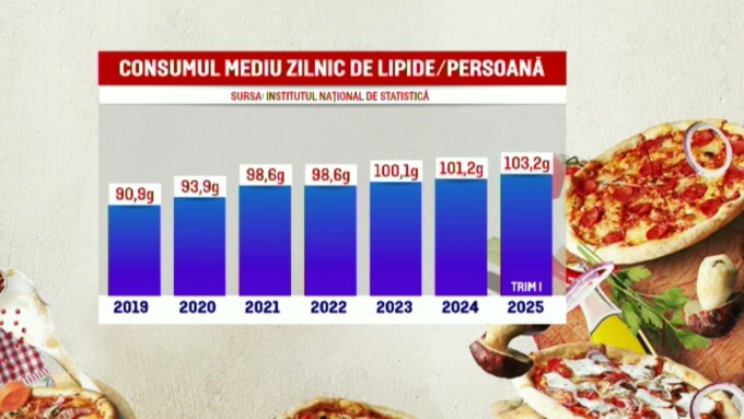 În cinci ani, am ajuns să consumăm de la 90 de grame de lipide, într-o zi, la peste 100 grame. Asta înseamnă că două linguri de ulei în plus pe zi față de 2019.