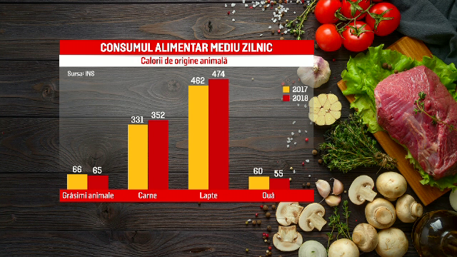 În privinţa caloriilor de origine animală, creşterea de la un an la altul se vede la carne şi uşor la lapte. În schimb avem o scădere la consumul de ouă.