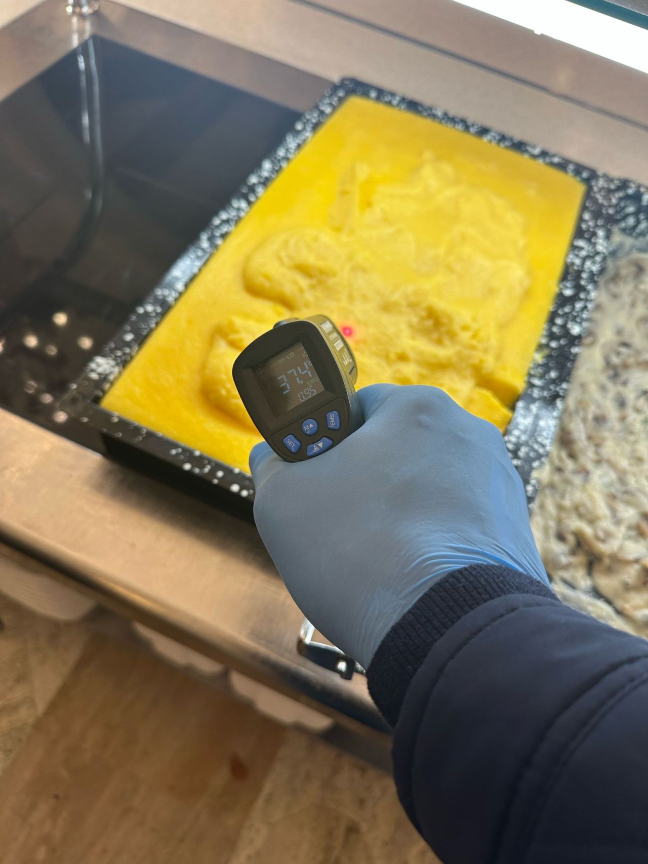 Comisarii de la Protecţia Consumatorilor au mai găsit ustensilele utilizate în procesul de producţie uzate şi neprofesionale şi tăvi de coacere care prezentau semne avansate de arsuri.
