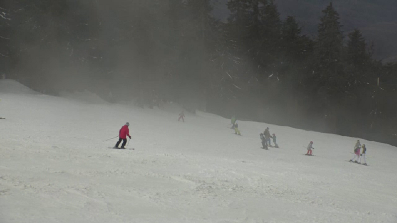 Iar în Poiana Braşov, turiştii s-au grăbit să meargă pe pârtie, pentru că ieri nu au putut schia din cauza vântului puternic.