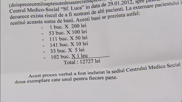 De aceasta data, pensionarul s-a impotrivit cat a putut personalului medical, care intentiona sa-l schimbe de haine, incercand de fiecare data sa-si protejeze buzunarele. Acest lucru li s-a parut suspect angajatilor Centrului Medical, care, dupa ce l-au perchezitionat, au gasit suma de 12.727 lei.