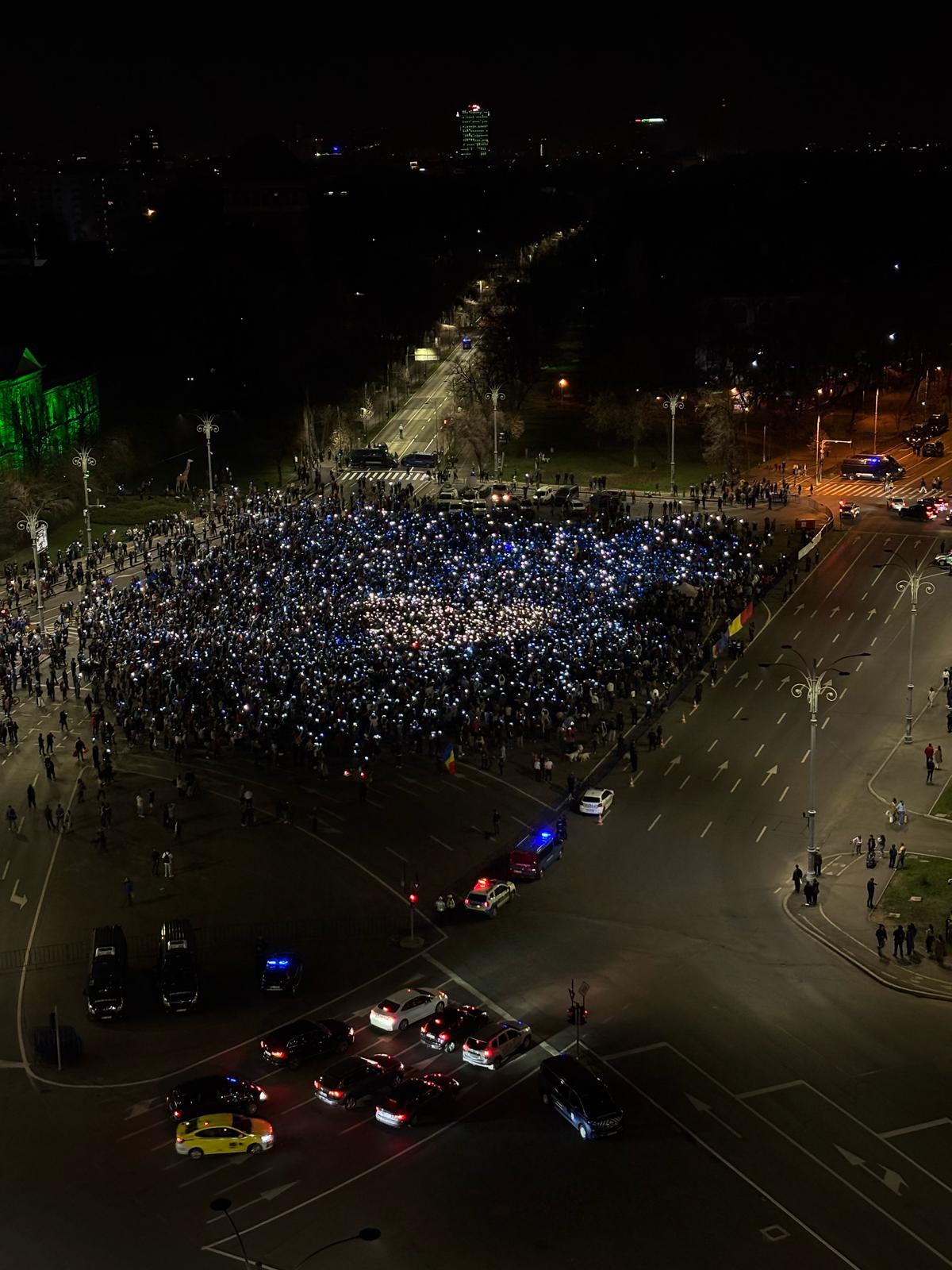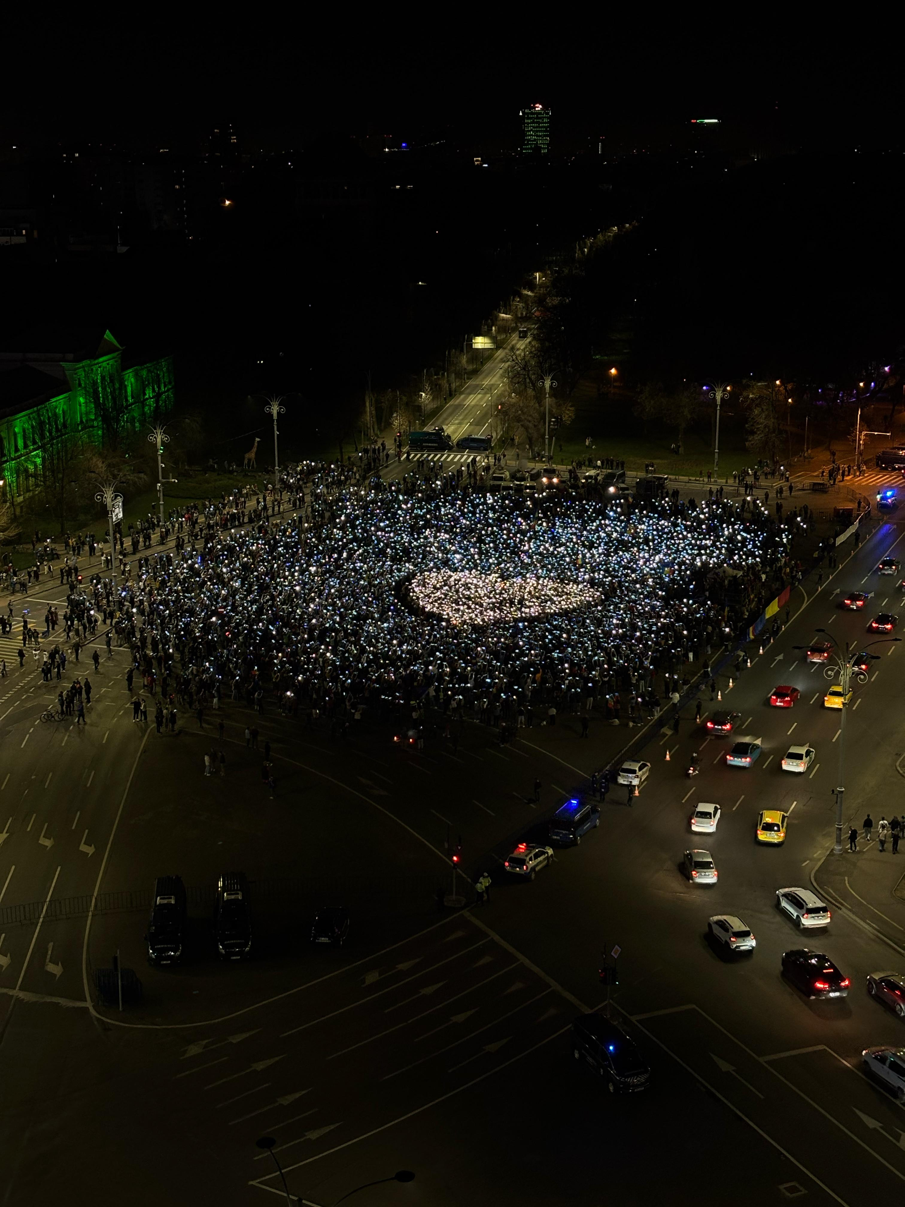 Piața Victoriei s-a aglomerat după lăsarea serii.