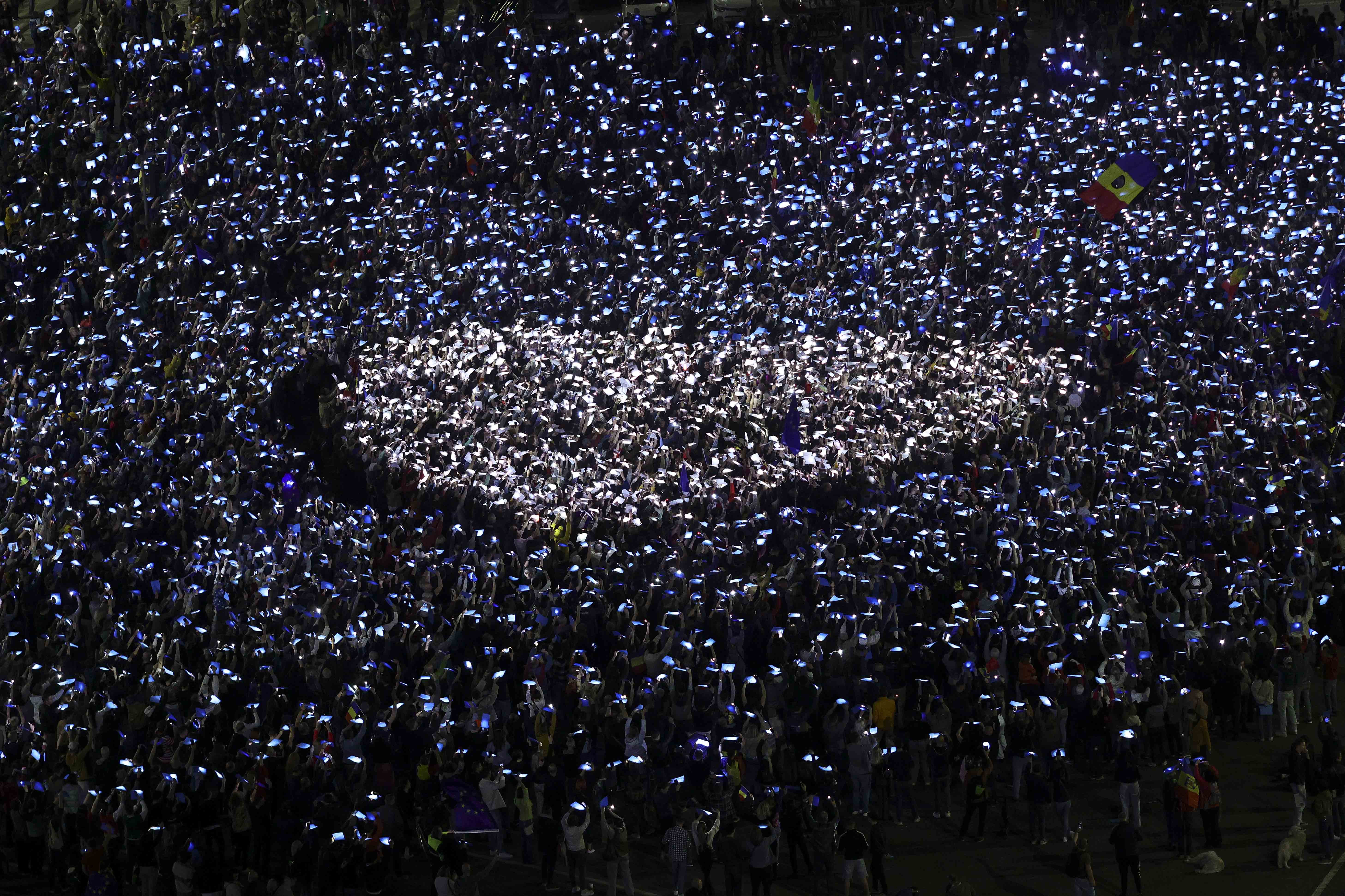 Mulțimea a scandat cu luminițele aprinse: "Europa, Europa!".