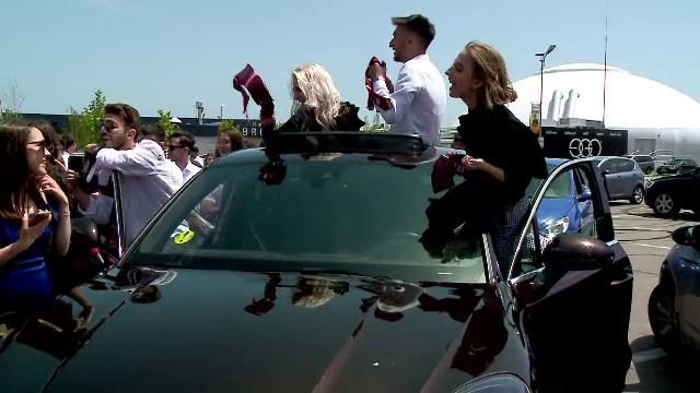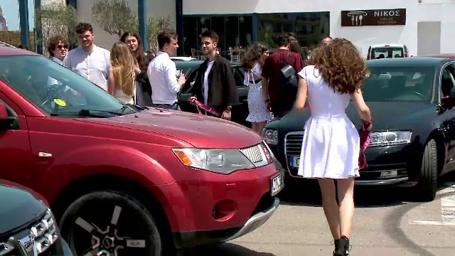 Fericiţi că au ajuns la finalul celor patru ani de liceu, tinerii pleacă la plimbare prin oraș cu mașinile și ies pe geamul autoturismului.