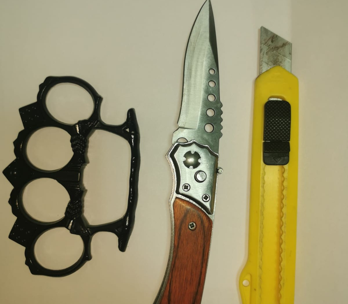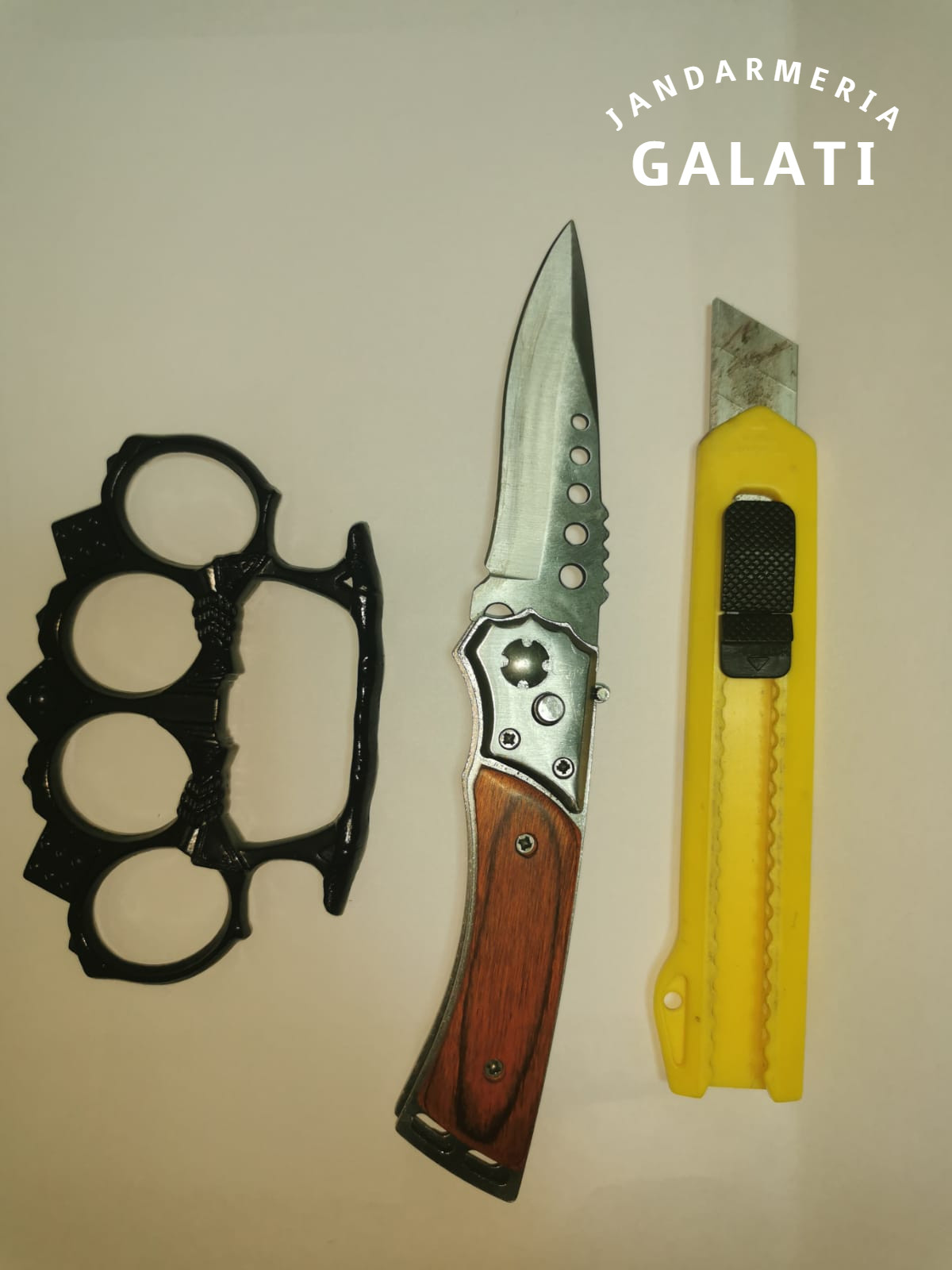 Potrivit fotografiilor furnizate de Jandarmeria Galați, unii protestatari au fost prinși că aveau la ei cuțite și arme pentru lupta corp la corp, așa numitele box-uri.