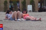 Turistii de pe plajă, care se bronzează și se relaxează la soare, trebuie să suporte situația.