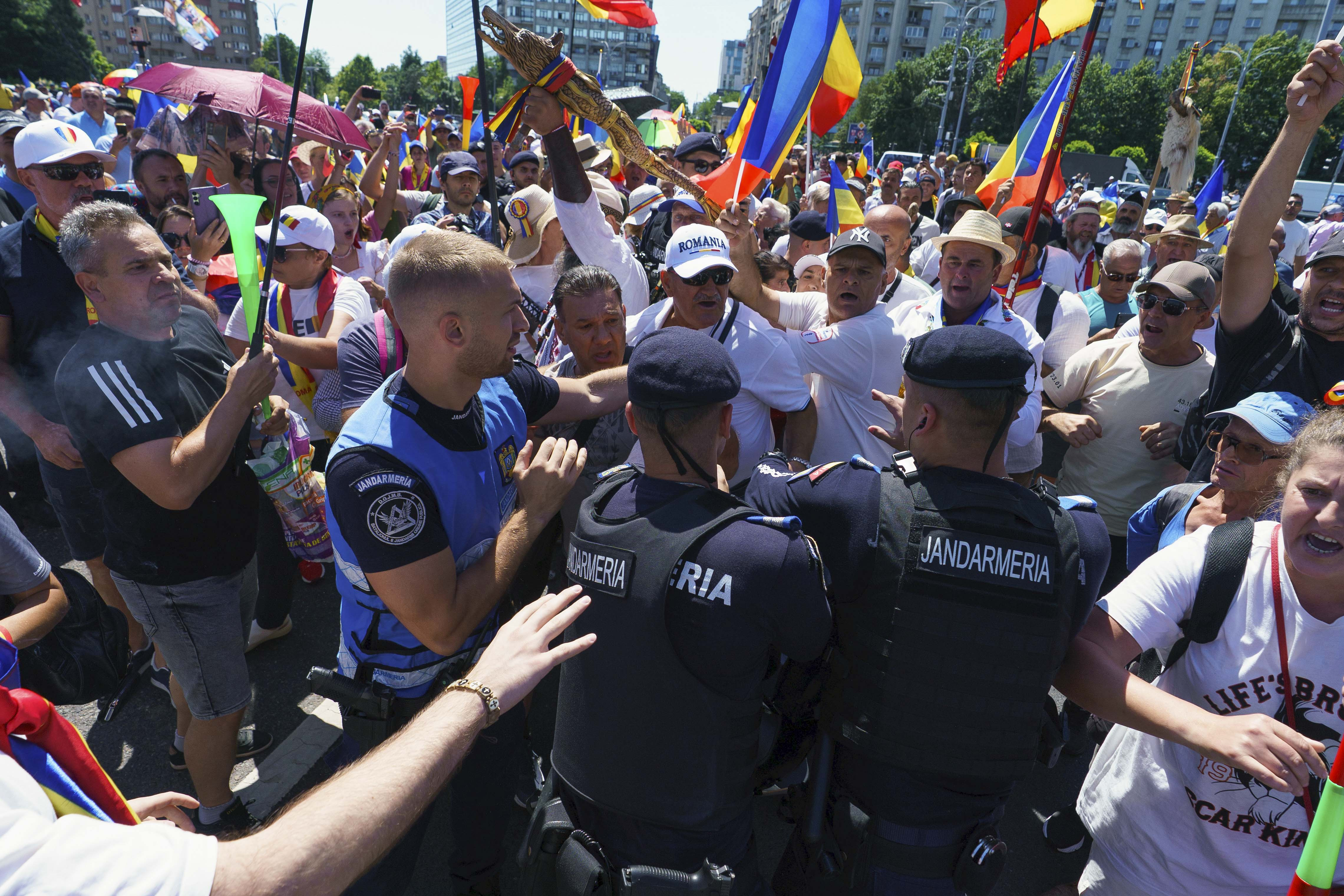 La un moment dat, mai mulţi manifestanţi s-au îmbrâncit cu forţele de ordine, protestatarii intenţionând să blocheze traficul în zonă.