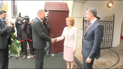Cunoscut pentru verticalitate si demnitate, Regele a facut astazi un alt gest simbolic: l-a invitat la Palat pe noul presedinte Klaus Iohannis. Acesta a sosit la ora 13 fix, ora exacta la care era asteptat. I-a daruit Principesei Margareta un buchet cu orhidee si trandafiri si a respectat protocolul ca la carte, facand un pas in lateral, fara sa-i intoarca spatele Altetei Sale, la momentul fotografiei.
