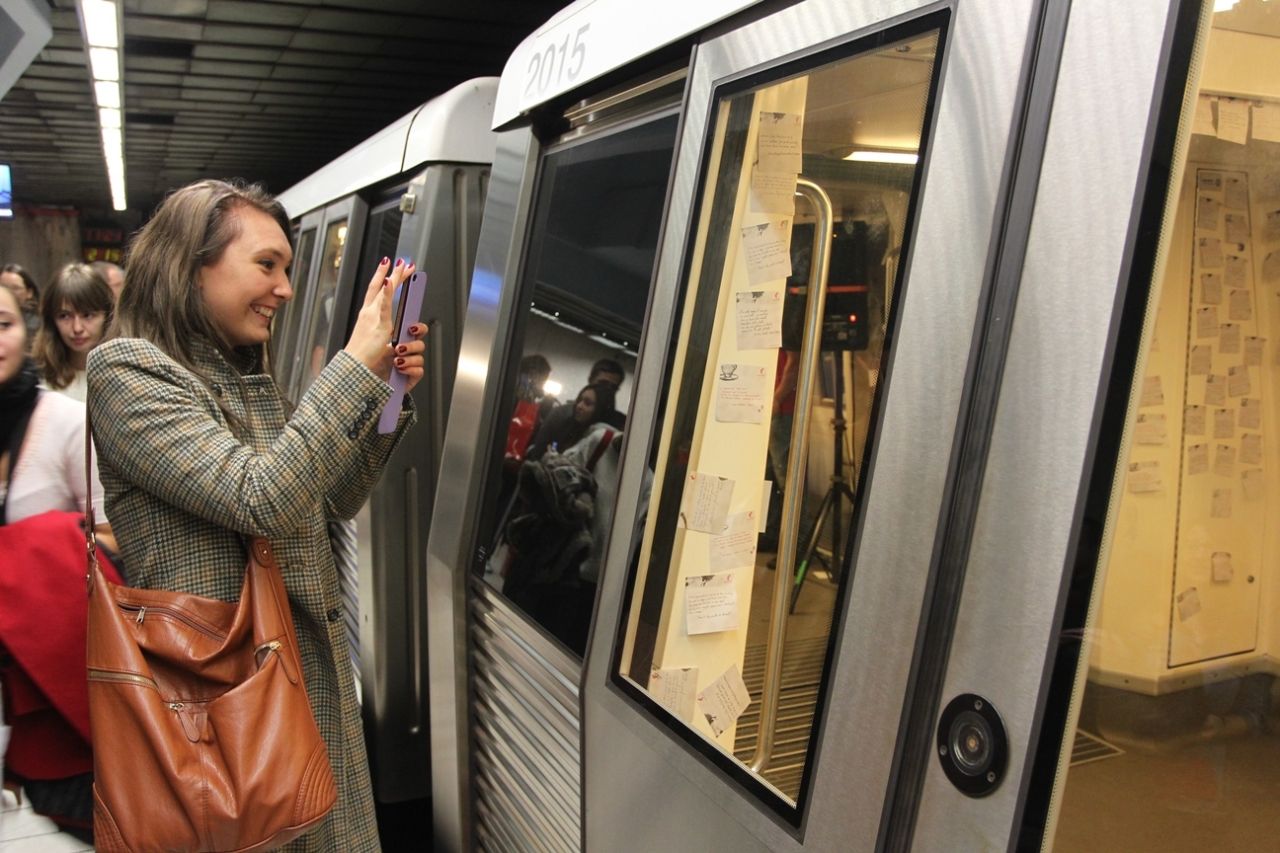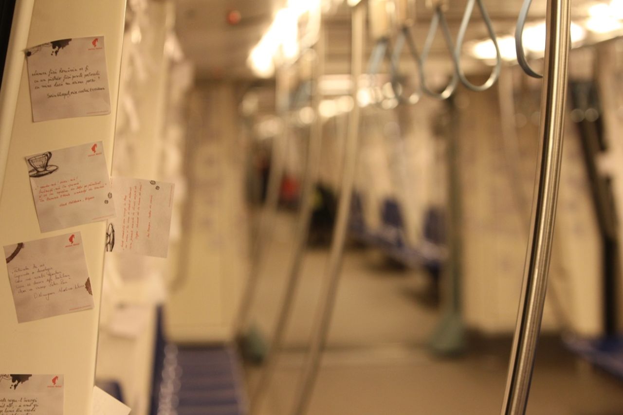 Mii de biletele lipite pe vagoanele unui metrou din Capitala. Surpriza poetica pentru toti pasagerii