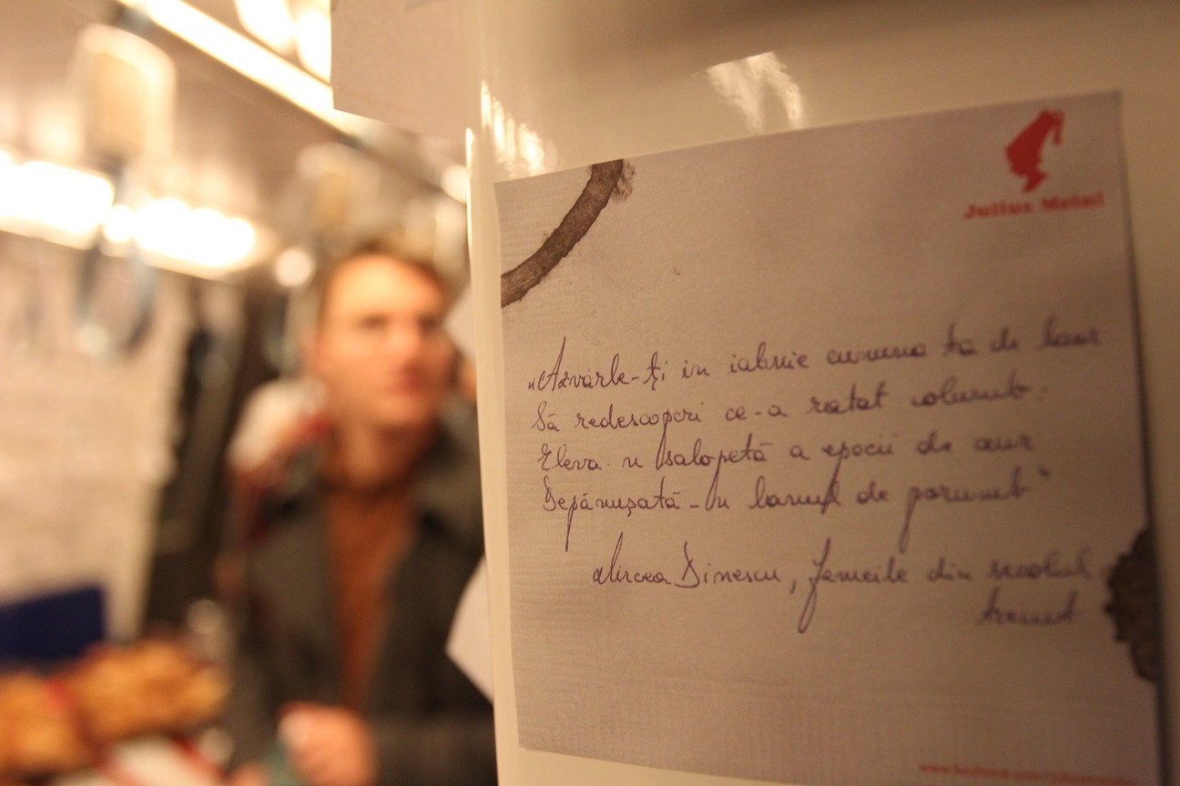 Calatorii sunt martorii unei initiative inedite de promovare a poeziei romanesti contemporane. Incantati, unii au luat acasa versurile lipite pretutindeni in vagoane, altii le-au pozat si le-au trimis prietenilor.