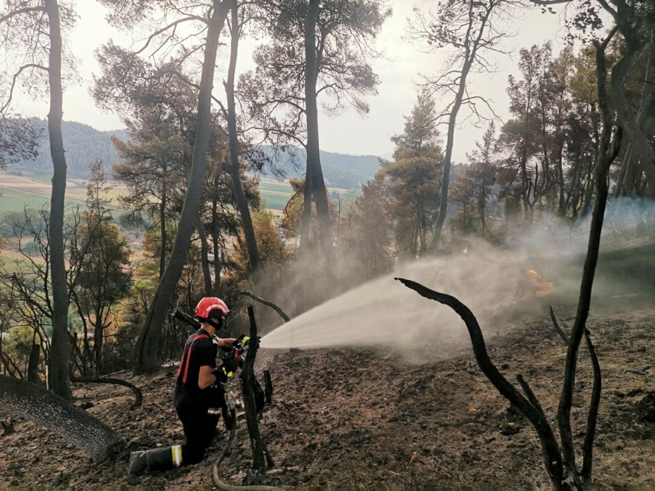 O fotografie cât o mie de cuvinte. Un băiat grec a mers să viziteze pompierii români care intervin în Grecia. În semn de mulțumire pentru că i-au salvat satul, copilul le-a dus plăcinte și porumb fiert românilor.