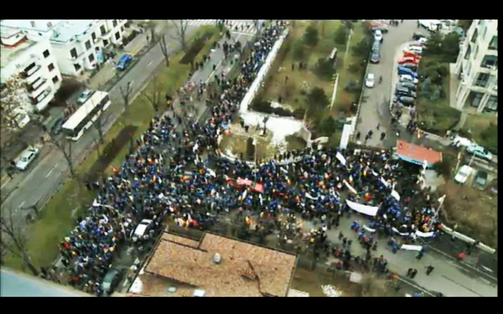Strigand impotriva Guvernului si a presedintelui, oamenii s-au incolonat apoi cuminti catre televiziunea publica.