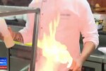 ”Aici o să pregătim niște creveți jumbo, ei așa arată, undeva la 10 minute maxim îi lăsăm, ei vin foarte groși, dacă i-aș lăsa așa ar dura foarte mult și atunci îi tai în două. Sos de vin, roșii, busuioc, un pic de usturoi”.