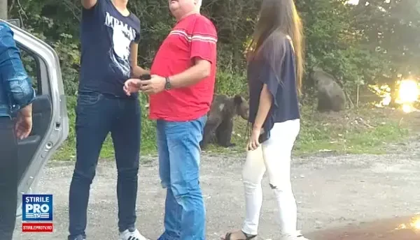 Cateva persoane, care par membre ale unei familii, au dat dovada de inconstienta si s-au oprit la cativa metri de doi ursuleti, pentru fotografii si filmulete. Nu s-au gandit nici macar o clipa ca in zona s-ar putea afla si mama puilor...