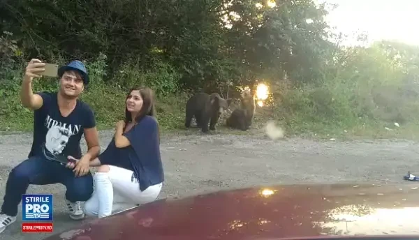 Cativa turisti si-au pus vietile in pericol, de dragul unei "poze de Facebook", facandu-si selfie cu ursii, pe Transfagarasan.