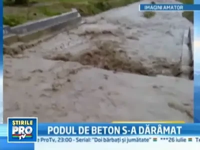 Tot in judetul Dambovita, raul care curge in apropiere de orasul Pucioasa a rupt in doua un pod abia construit de cateva luni. Era singura cale de acces catre o fabrica de paine si 14 gospodarii, care sunt acum izolate.