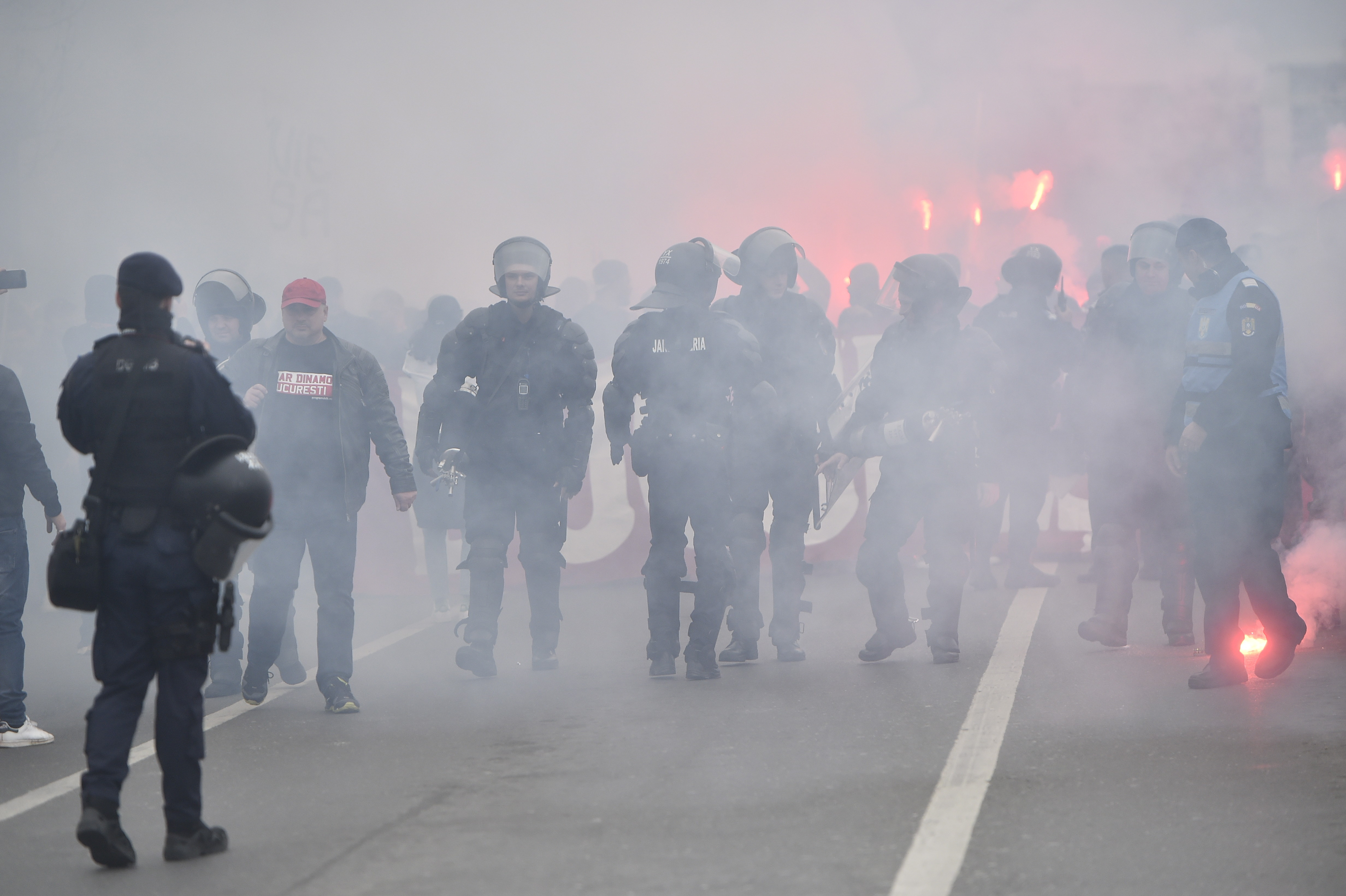 „Totodată, au fost aplicate 8 sancţiuni complementare privind interzicerea accesului la competiţiile sportive pe o perioadă cuprinsă între 6 luni şi 1 an", se mai menţionează într-o informare transmisă de Jandarmeria Bucureşti.