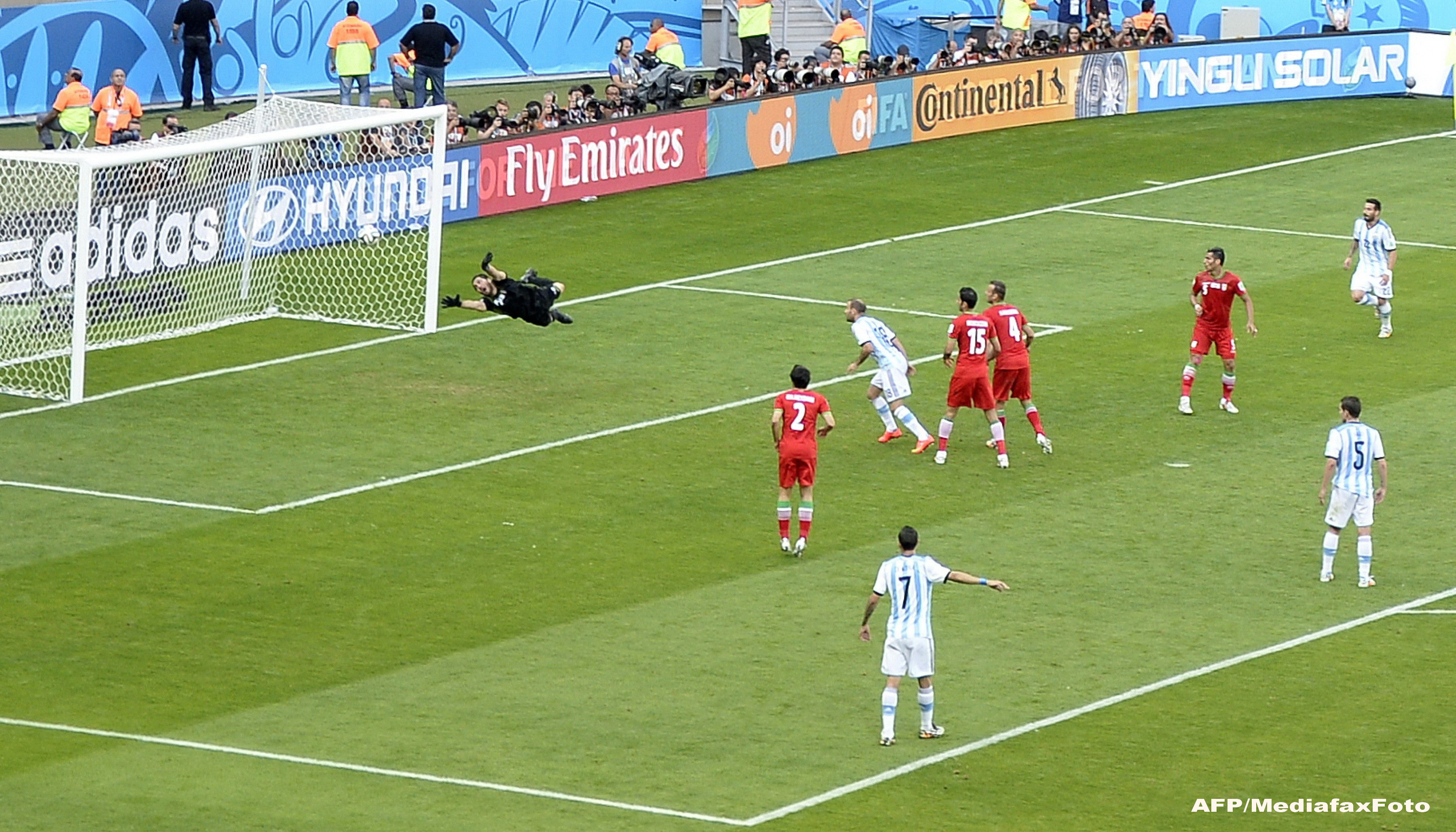 Luni, 16 iunie 2014 - CAMPIONATUL MONDIAL DE FOTBAL 2014. Reprezentativa Iranului a incheiat la egalitate, scor 0-0, meciul sustinut, luni, la Curitiba, in compania selectionatei Nigeriei, in grupa F de la CAMPIONATUL MONDIAL DE FOTBAL 2014, aceasta fiind prima partida de la turneul final la care nu s-a inscris niciun gol. Germania a invins, luni, la Salvador, cu scorul de 4-0 (3-0), selectionata Portugaliei, intr-un meci contand pentru grupa G de la Cupa Mondiala, in care atacantul Thomas Muller a reusit primul hattrick al CAMPIONATULUI MONDIAL DE FOTBAL 2014 din Brazilia. Golurile au fost marcate de Thomas Muller '11 (penalti), '45+1 si '78 si Hummels '32. Din minutul 37, Portugalia a evoluat cu un jucator mai putin dupa ce Pepe a fost eliminat pentru ca l-a lovit cu mana in fata pe Muller si a avut o reactie nervoasa la adresa atacantului german lovindu-l cu capul. La partida a asistat si cancelarul Germaniei, Angela Merkel. Reprezentativa Argentinei a invins, duminica, pe arena Maracana, cu scorul de 2-1 (1-0), selectionata Bosniei-Hertegovina, intr-un meci contand pentru grupa F de la Cupa Mondiala din Brazilia. Pentru Argentina au marcat Kolasinac '3 (autogol) si Messi '65, iar pentru Bosnia-Hertegovina a inscris Ibisevici '85. Celalalt meci din grupa F, Iran - Nigeria, are loc luni la Curitiba, de la ora 22.00. Capitanul reprezentativei Argentinei, Lionel Messi a declarat ca Bosnia-Hertegovina este o echipa foarte buna, subliniind ca pentru formatia sa era important ca inceapa turneul final al Cupei Mondiale cu o victorie, informeaza As. "Era important sa incepem cu o victorie si am reusit. Bosnia este o mare echipa si joaca foarte bine. In prima repriza i-am lasat sa joace, le-am lasat mingea si ne-a fost greu sa iesim pe contraatac", a declarat Messi, care le-a multumit fanilor de pe Maracana, care au sustinut echipa Argentinei. "Nu aveam nicio indoiala ca va fi asa. Acum trebuie sa mergem inainte cu liniste si sa incercam sa ne indeplinim obiectivul", a precizat jucatorul argentinian.