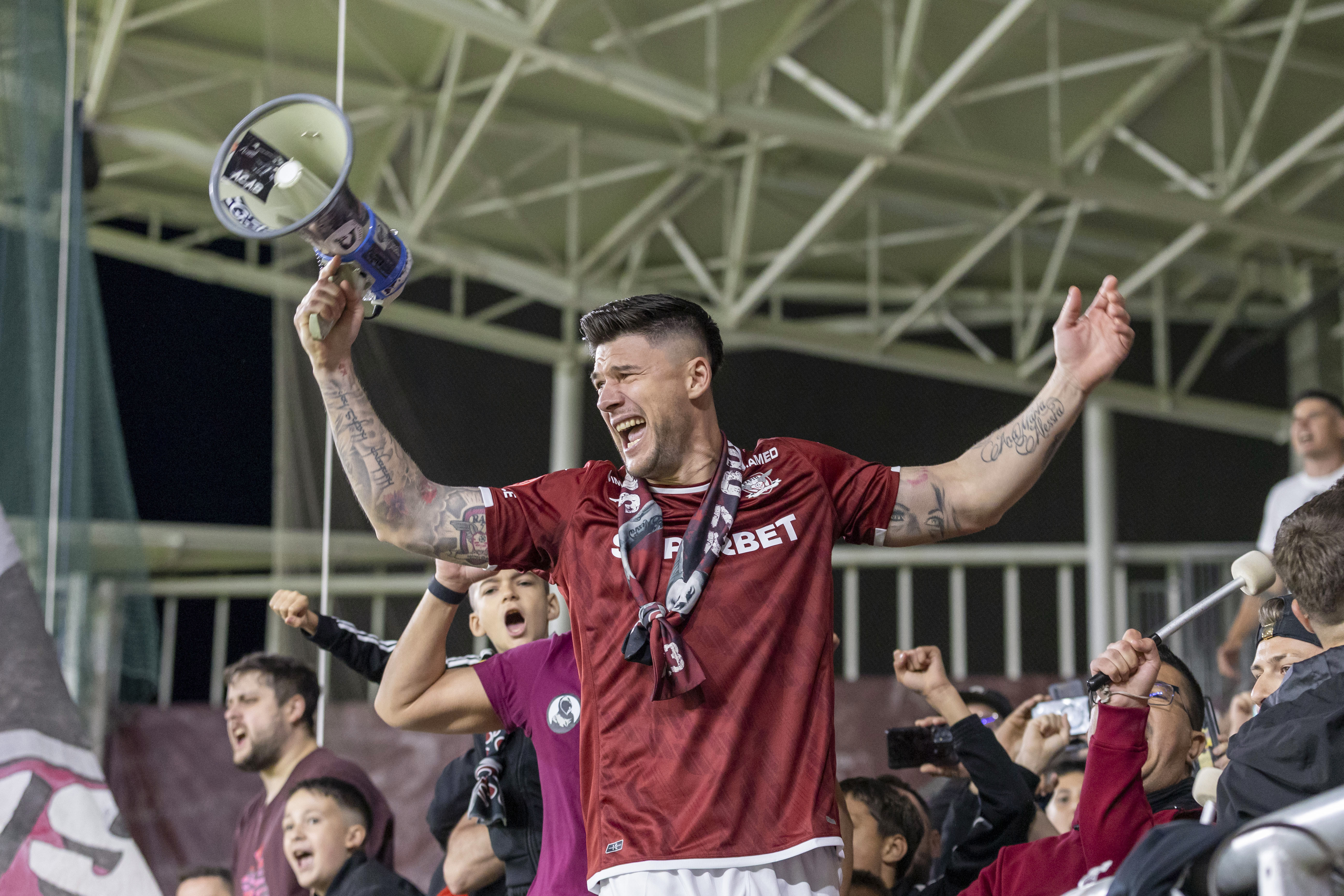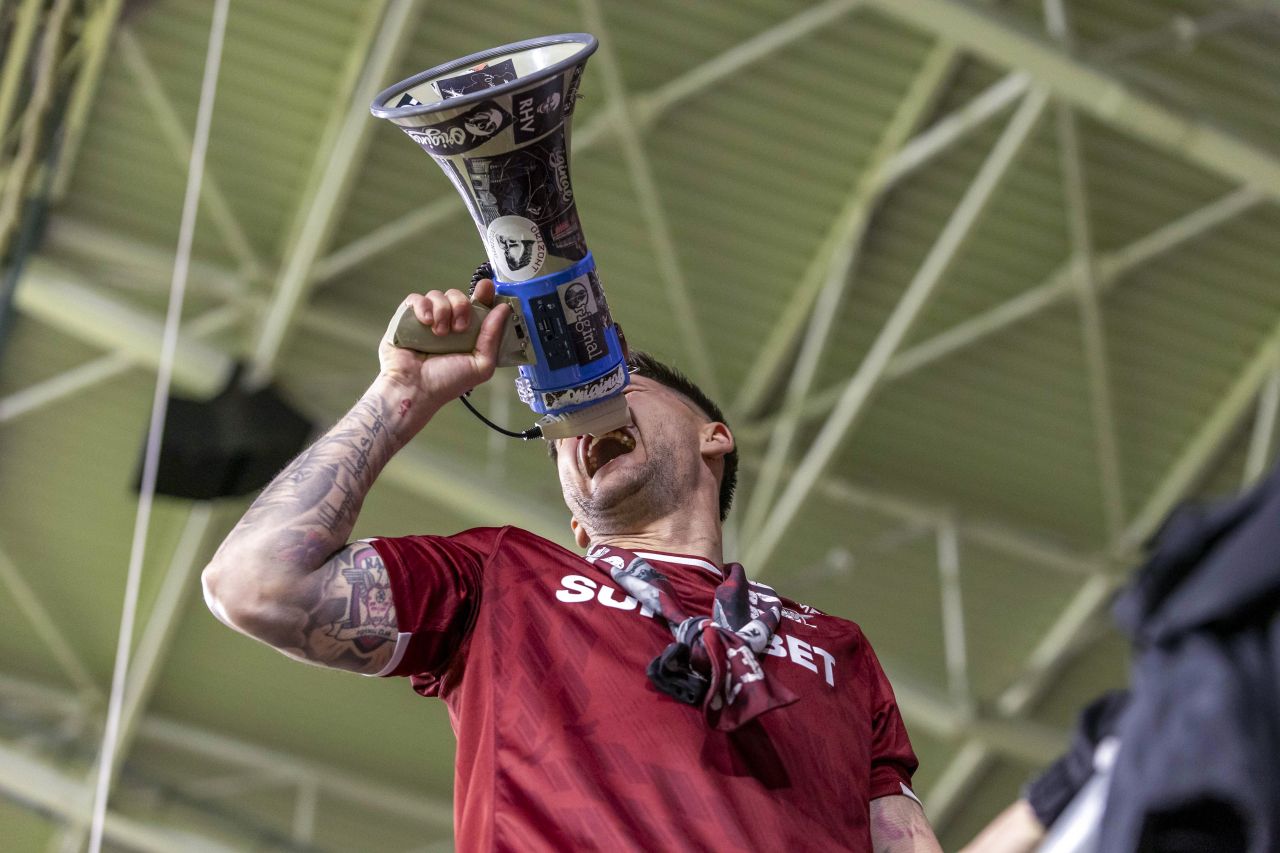 Jucătorii s-au strâns la mijlocul terenului, iar Săpunaru s-a adresat fanilor şi a plâns, în timp ce suporterii îi scandau numele.