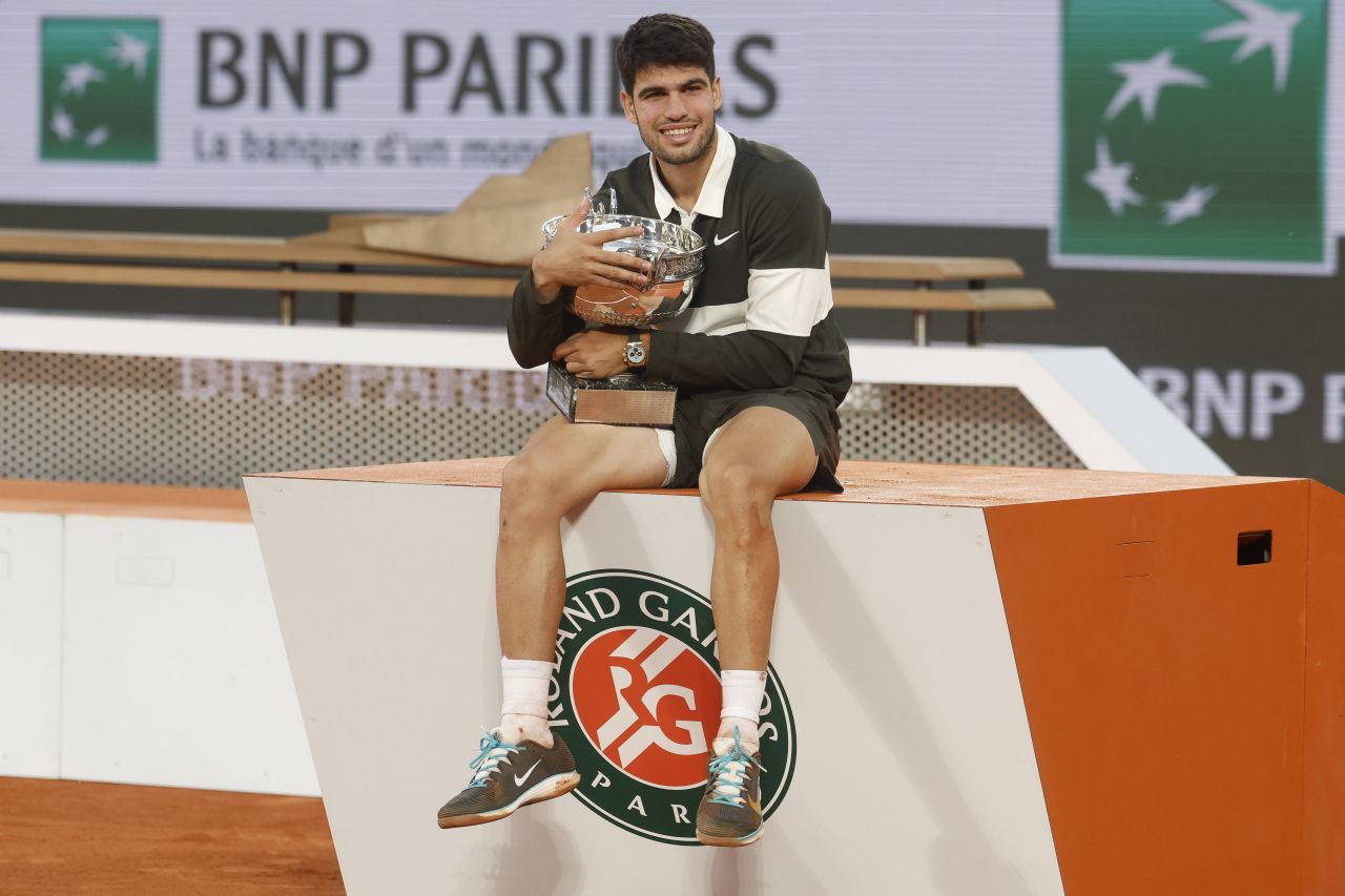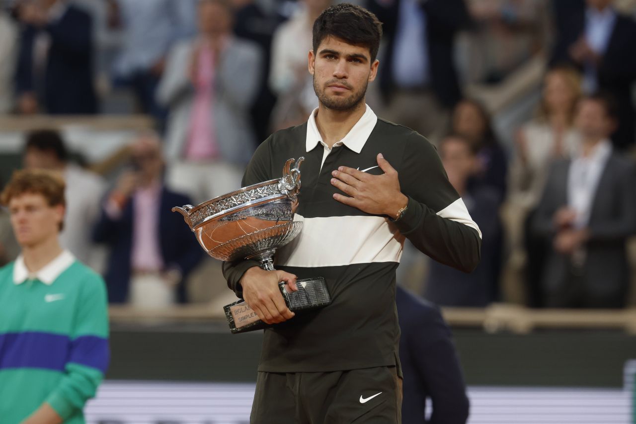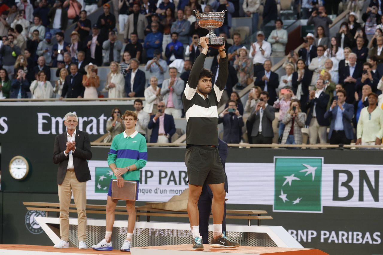 Tenismanul spaniol Carlos Alcaraz, numărul 2 mondial, a câştigat turneul de Mare Şlem de la Roland Garros pentru al doilea an consecutiv, după ce l-a învins în cinci seturi, 4-6, 6-7 (4/7), 6-4, 7-6 (7/3), 7-6 (10/2), pe italianul Jannik Sinner.